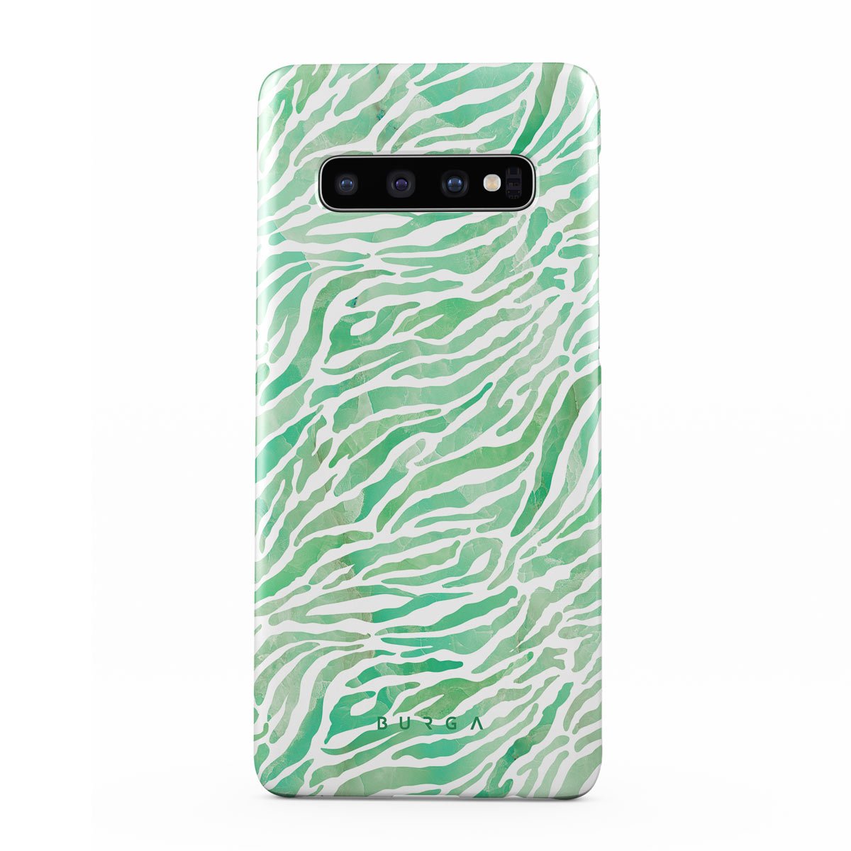 Our Free Spirit Samsung Galaxy S10 Plus phone case features an exotic zebra pattern in varying shades of green. Keep your spirits up, as there is no need to worry about your phone, as this trendy case is not only pretty but offers the heavy-duty protection that your cellphone requires.