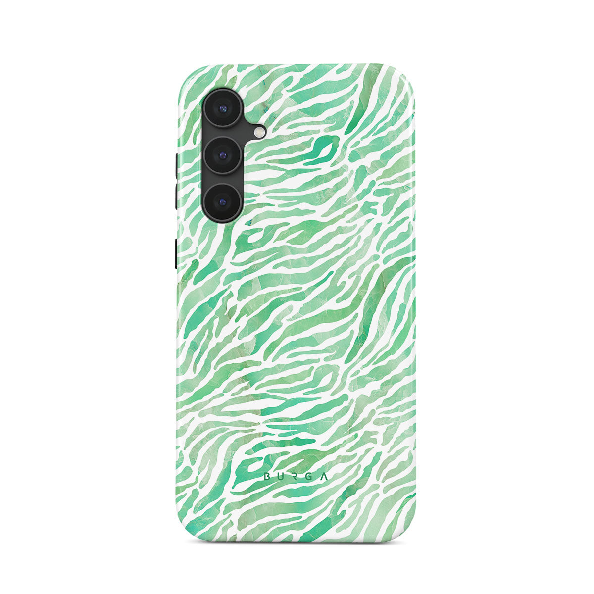 Our Free Spirit Samsung Galaxy S23 FE phone case features an exotic zebra pattern in varying shades of green. Keep your spirits up, as there is no need to worry about your phone, as this trendy case is not only pretty but offers the heavy-duty protection that your cellphone requires.