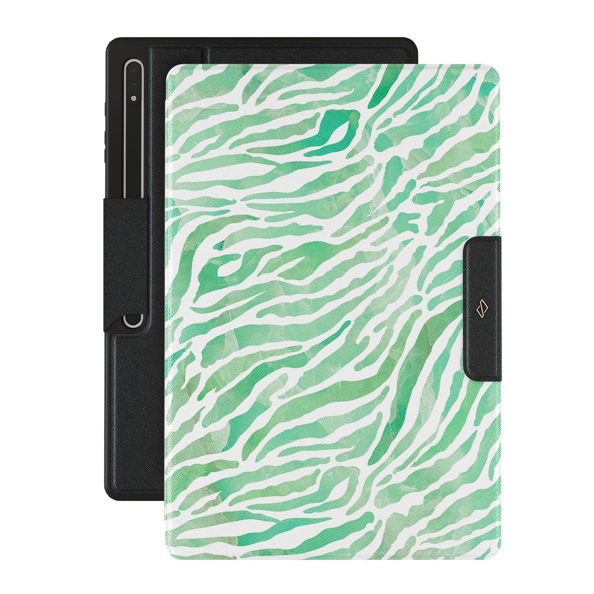 Our Free Spirit Samsung Galaxy Tab S8 Ultra folio case features an exotic zebra pattern in varying shades of green. Keep your spirits up, as there is no need to worry about your Galaxy Tab, as this trendy case is not only pretty but offers the heavy-duty protection that your cellGalaxy Tab requires.