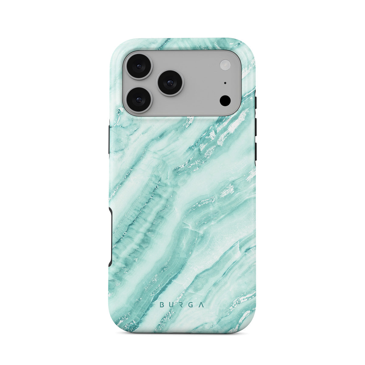 Add freshness to your style with our Fresh Breeze iPhone 17 Pro Max phone case. The soft cyan color of the case is emphasized in a unique marble pattern. Do not let the softness of the color deceive you; the case still offers heavy-duty protection for your cellphone.