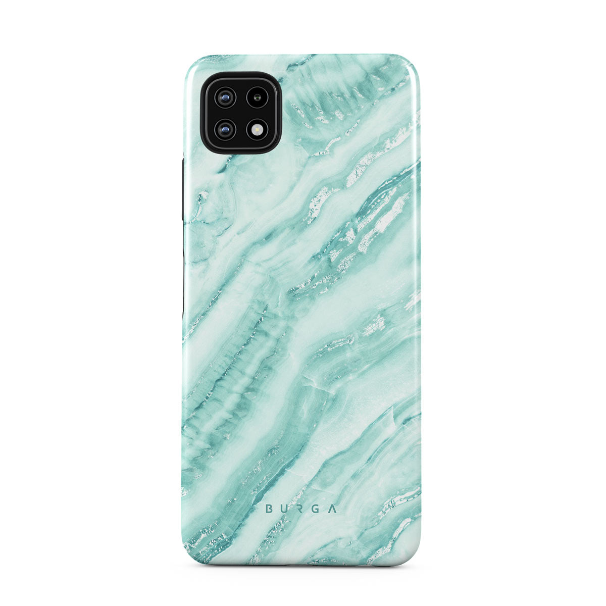 Add freshness to your style with our Fresh Breeze Samsung Galaxy A22 5G phone case. The soft cyan color of the case is emphasized in a unique marble pattern. Do not let the softness of the color deceive you; the case still offers heavy-duty protection for your cellphone.