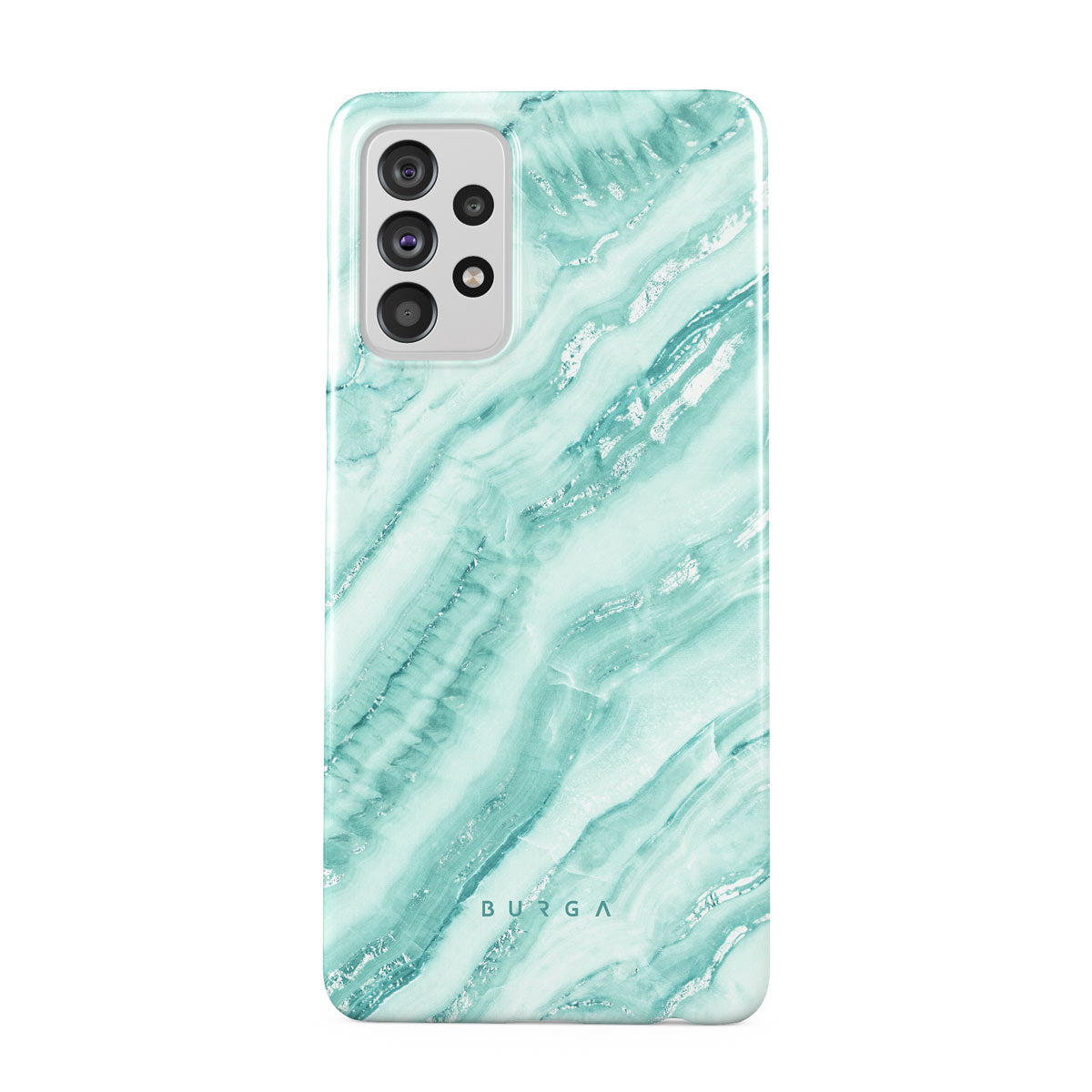 Add freshness to your style with our Fresh Breeze Samsung Galaxy A72 phone case. The soft cyan color of the case is emphasized in a unique marble pattern. Do not let the softness of the color deceive you; the case still offers heavy-duty protection for your cellphone.
