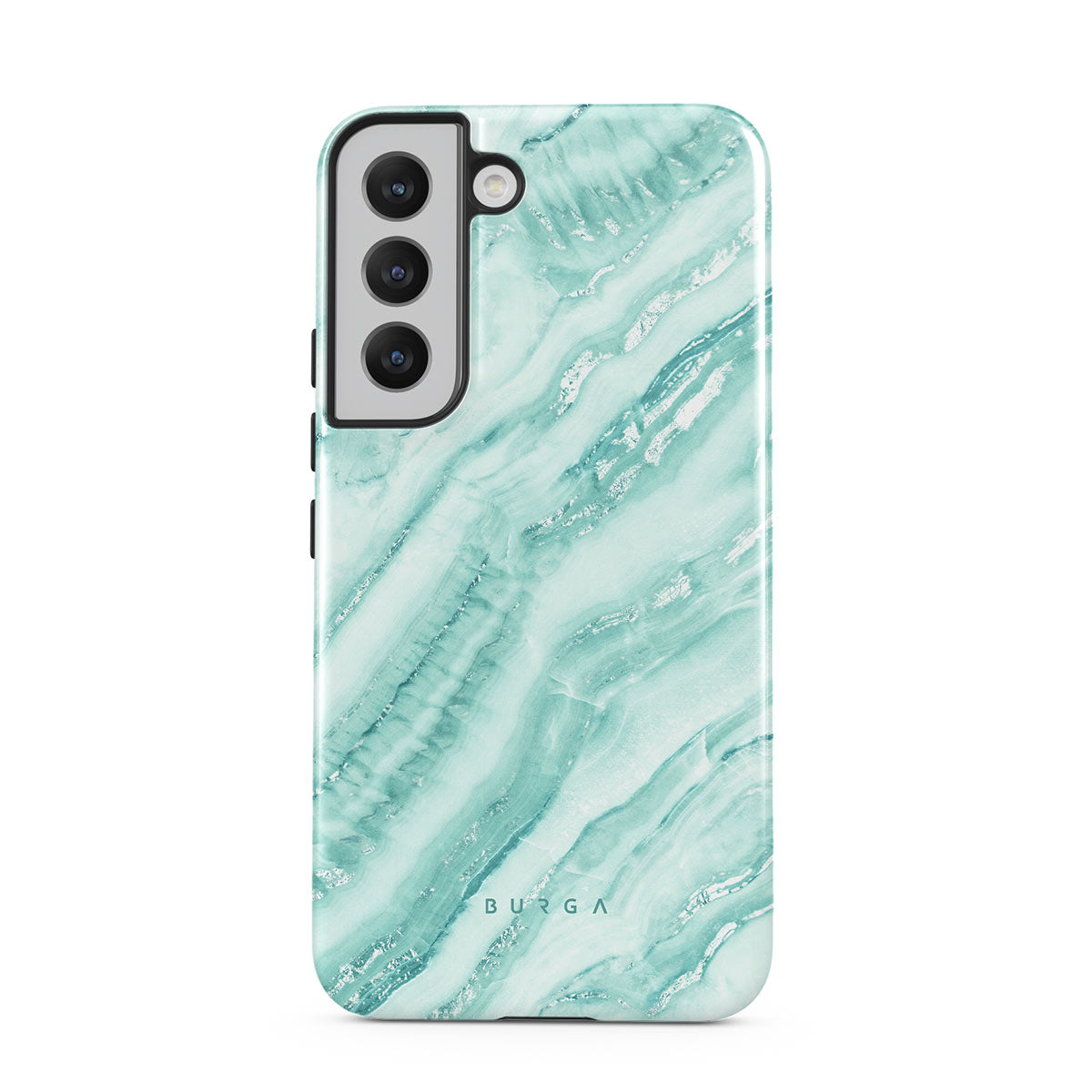 Add freshness to your style with our Fresh Breeze Samsung Galaxy S22 Plus phone case. The soft cyan color of the case is emphasized in a unique marble pattern. Do not let the softness of the color deceive you; the case still offers heavy-duty protection for your cellphone.