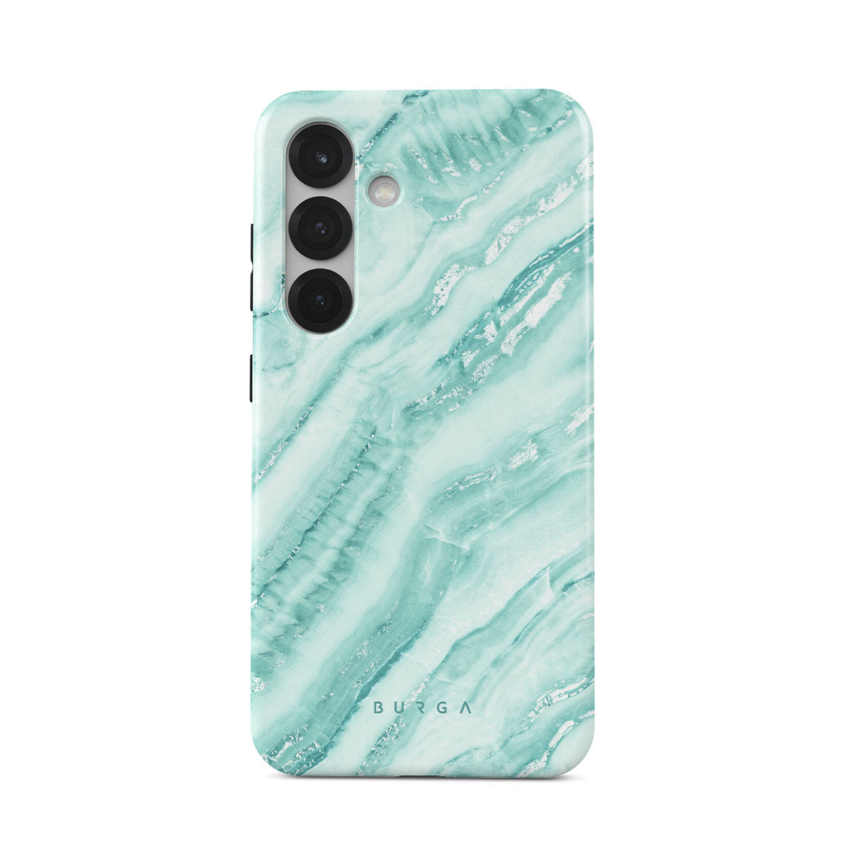 Add freshness to your style with our Fresh Breeze Samsung Galaxy S25 Plus phone case. The soft cyan color of the case is emphasized in a unique marble pattern. Do not let the softness of the color deceive you; the case still offers heavy-duty protection for your cellphone.