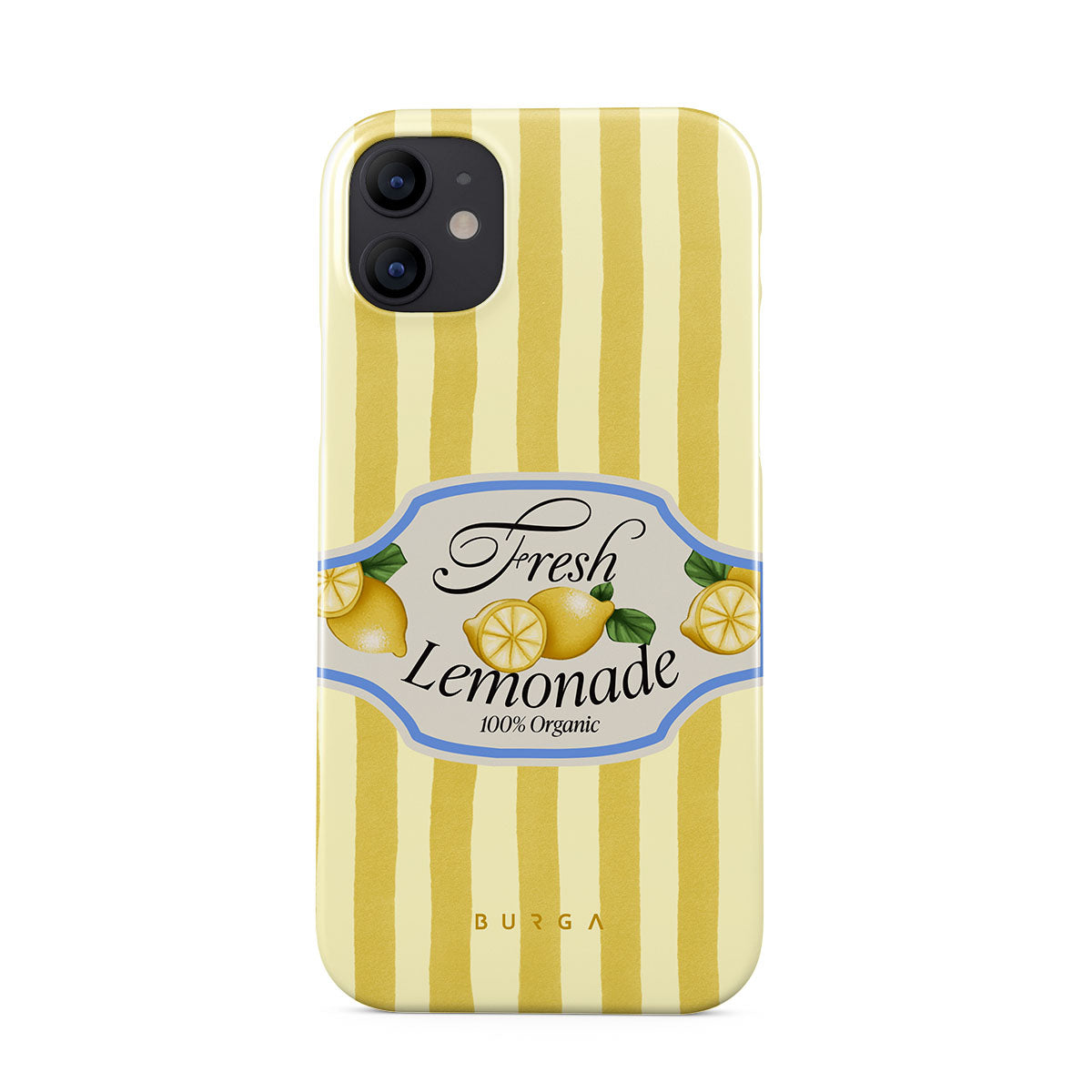 This design features: lemons, yellow stripes, playful graphics