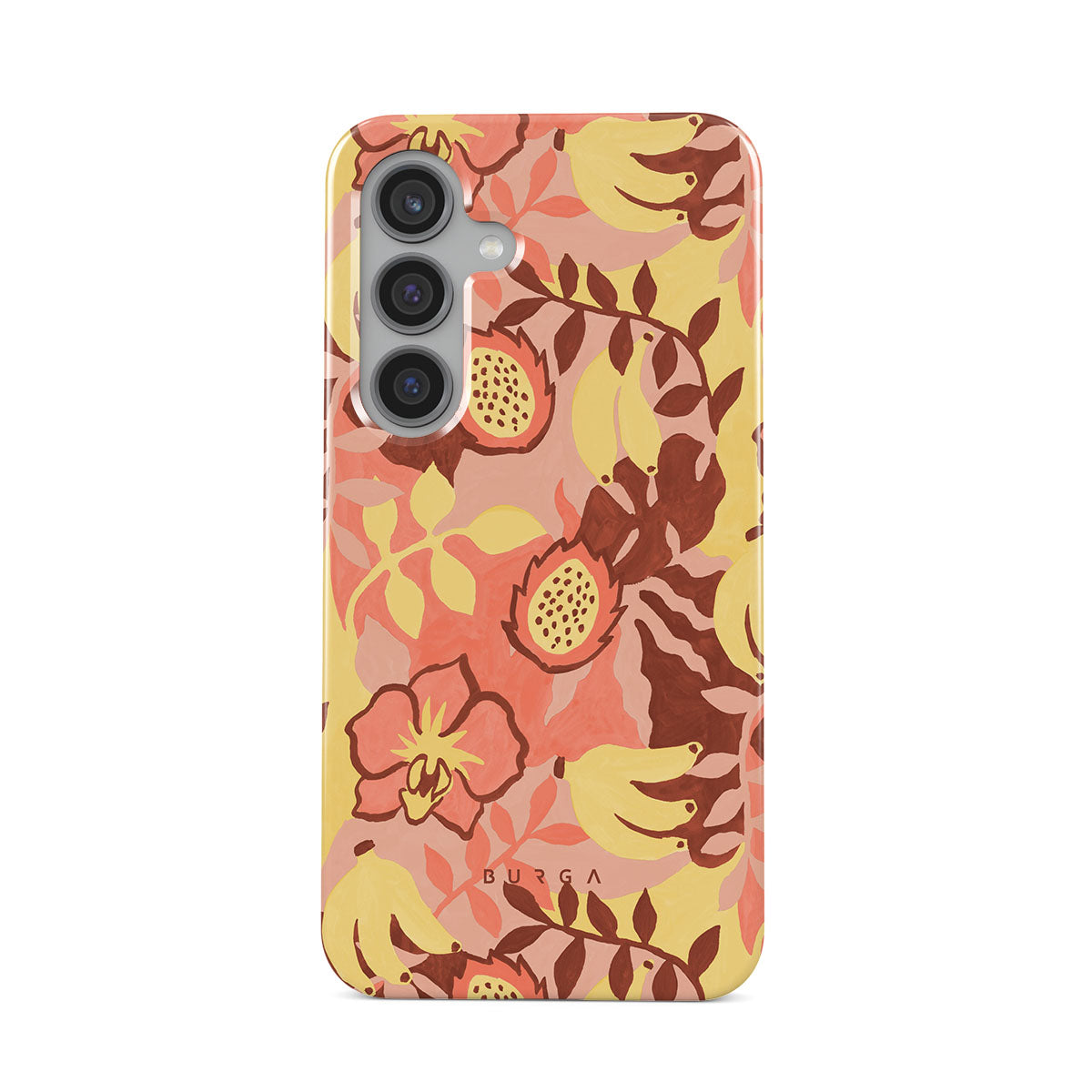 Half still life, half daydream. Fruit that doesn’t know it’s art, floating in a cloud of warm pink. This Samsung Galaxy S24 Plus phone case design is giving: “I only eat mangoes in bed.”