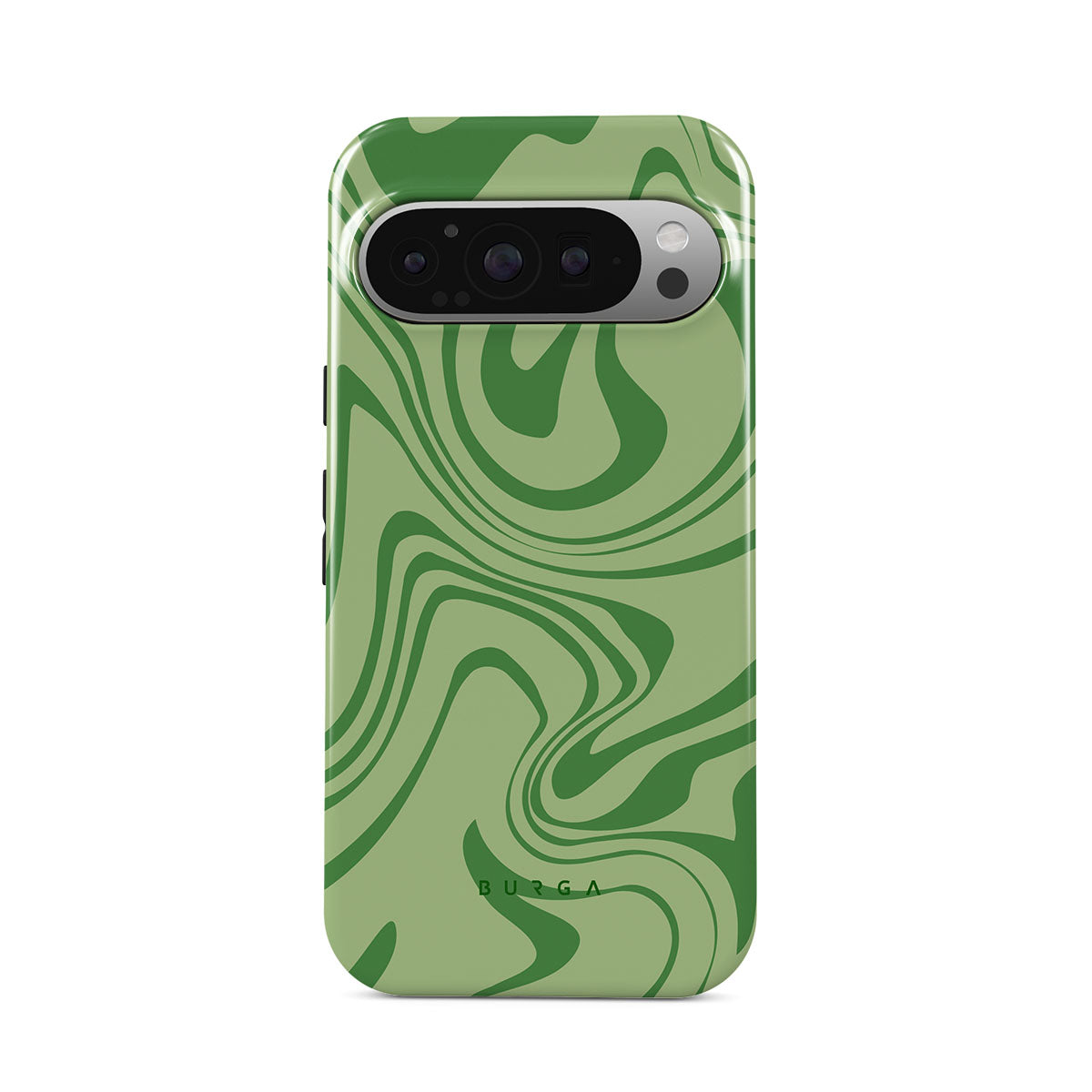 Our Funky Sensation Google Pixel 9 Pro phone case design is a perfect abstract piece for those who love soft pastel colors but still want to stand out. A sharper take on the liquid swirl design in green shades will accompany your device perfectly.