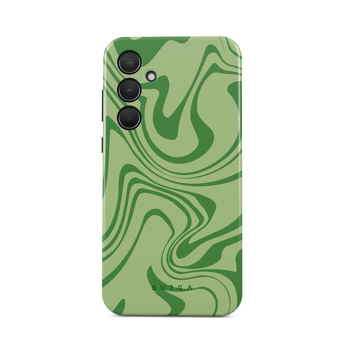 Our Funky Sensation Samsung Galaxy A35 phone case design is a perfect abstract piece for those who love soft pastel colors but still want to stand out. A sharper take on the liquid swirl design in green shades will accompany your device perfectly.