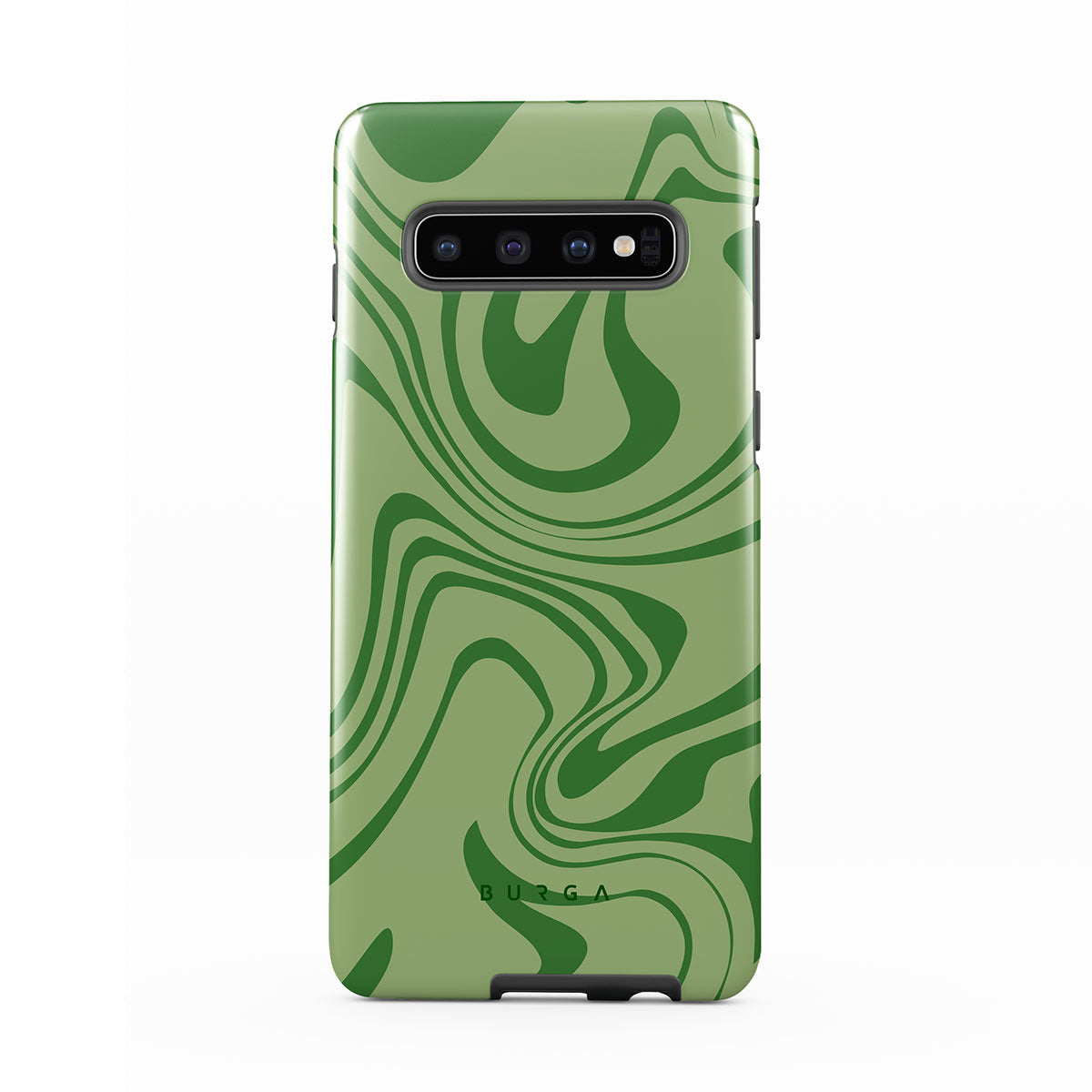 Our Funky Sensation Samsung Galaxy S10 4G phone case design is a perfect abstract piece for those who love soft pastel colors but still want to stand out. A sharper take on the liquid swirl design in green shades will accompany your device perfectly.