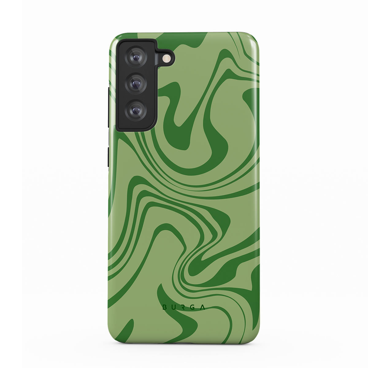 Our Funky Sensation Samsung Galaxy S21 FE phone case design is a perfect abstract piece for those who love soft pastel colors but still want to stand out. A sharper take on the liquid swirl design in green shades will accompany your device perfectly.