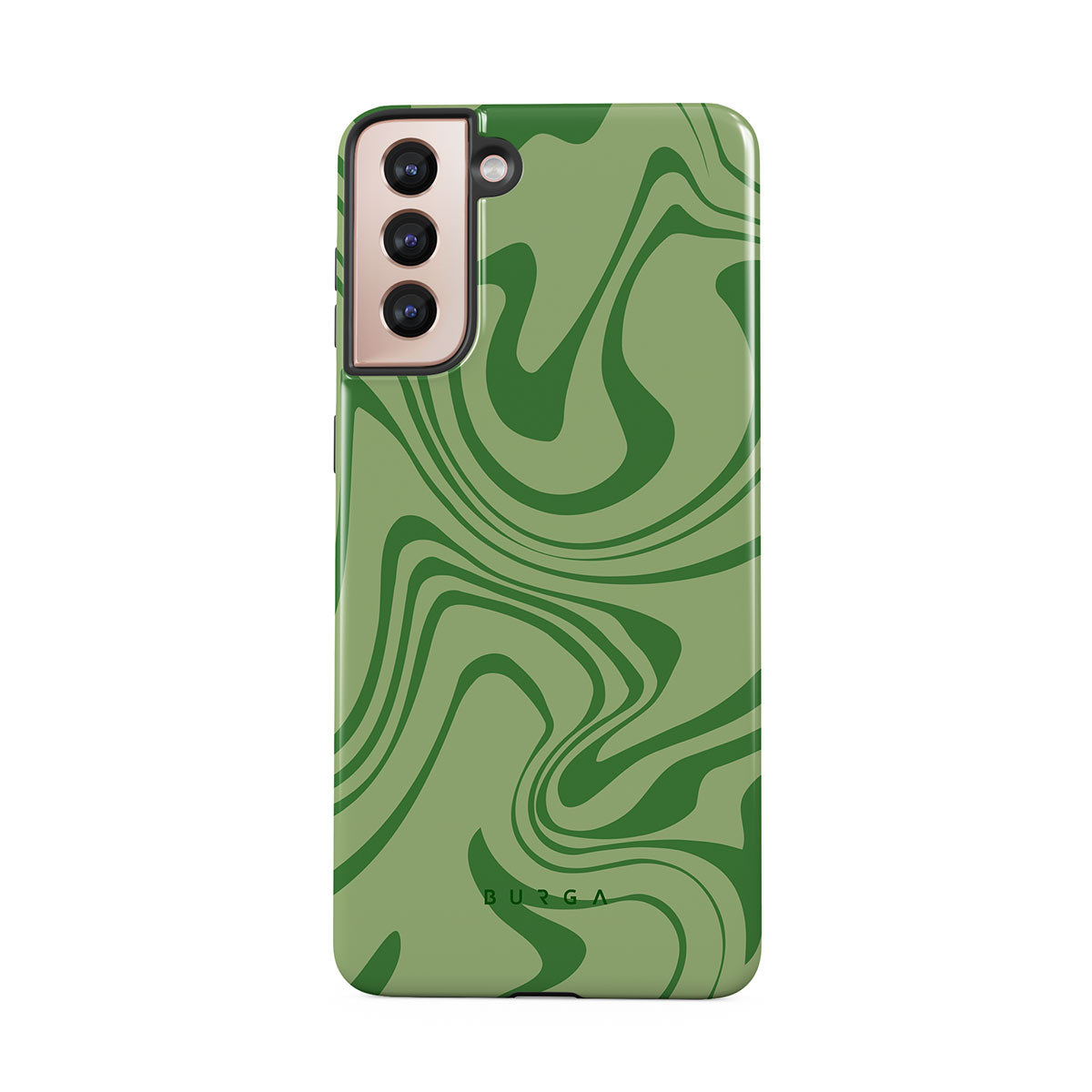 Our Funky Sensation Samsung Galaxy S21 Plus phone case design is a perfect abstract piece for those who love soft pastel colors but still want to stand out. A sharper take on the liquid swirl design in green shades will accompany your device perfectly.