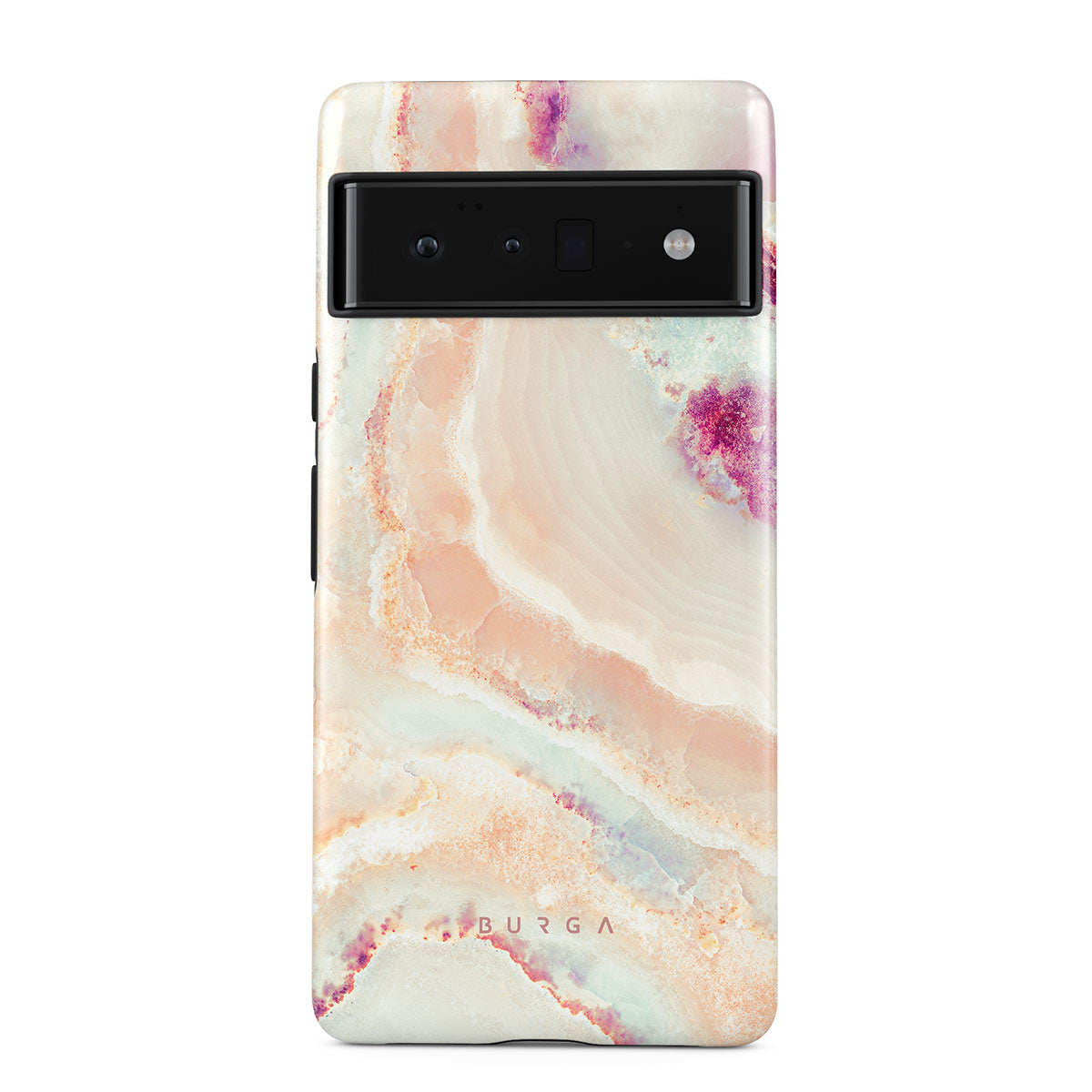 The soft color scheme of coral, pink, blue, and purple of our Berry Sorbet Google Pixel 6 Pro phone case radiates soft girly vibes. The feminine touch is felt throughout the design, making it an excellent choice to add to the springtime wardrobe and protect your phone from scratches and falls.