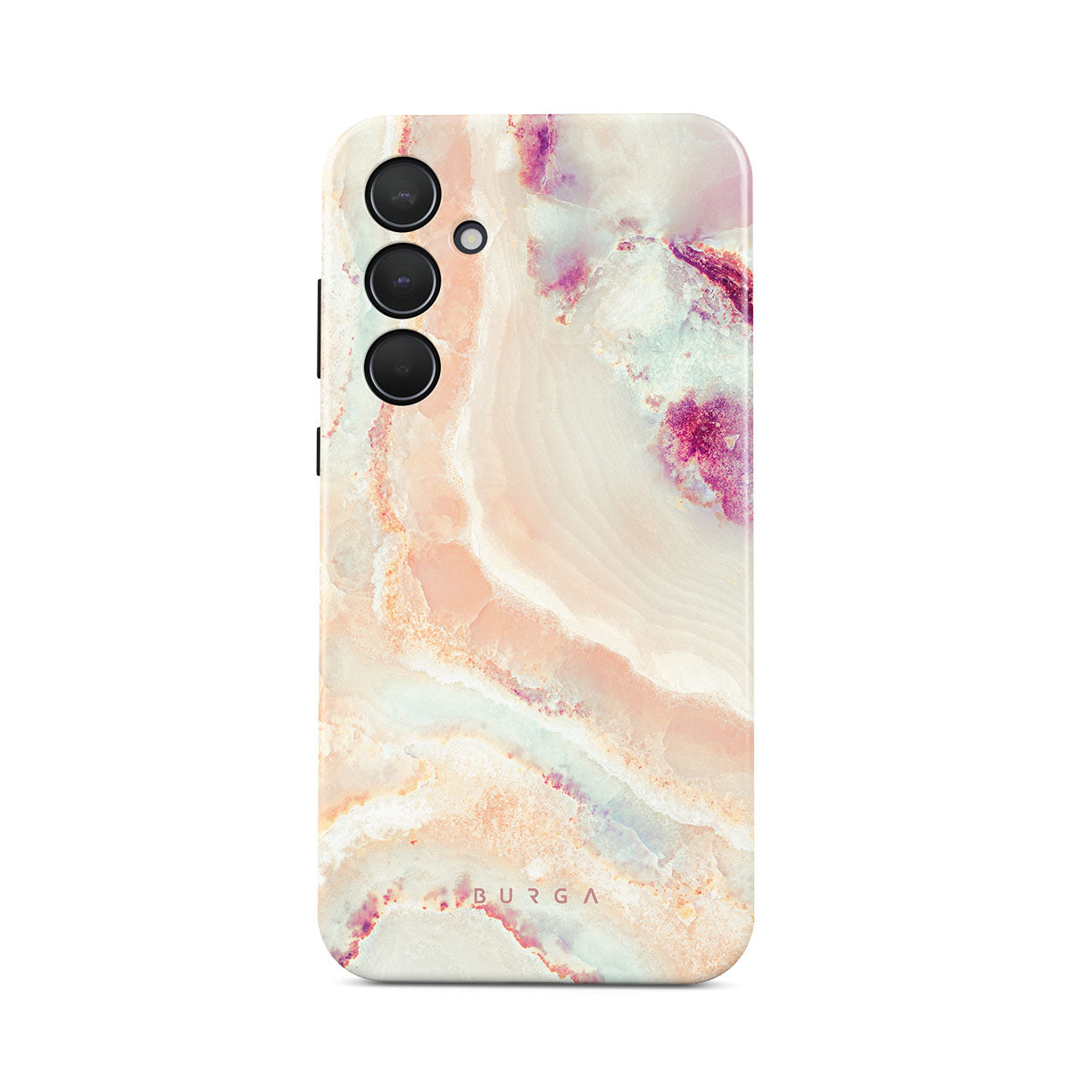 The soft color scheme of coral, pink, blue, and purple of our Berry Sorbet Samsung Galaxy A51 phone case radiates soft girly vibes. The feminine touch is felt throughout the design, making it an excellent choice to add to the springtime wardrobe and protect your phone from scratches and falls.