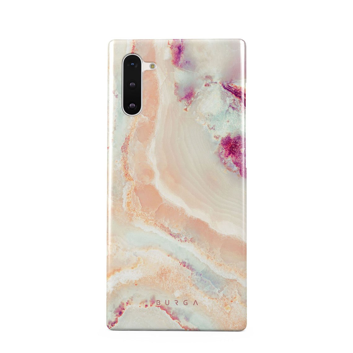 The soft color scheme of coral, pink, blue, and purple of our Berry Sorbet Samsung Galaxy Note 10 phone case radiates soft girly vibes. The feminine touch is felt throughout the design, making it an excellent choice to add to the springtime wardrobe and protect your phone from scratches and falls.