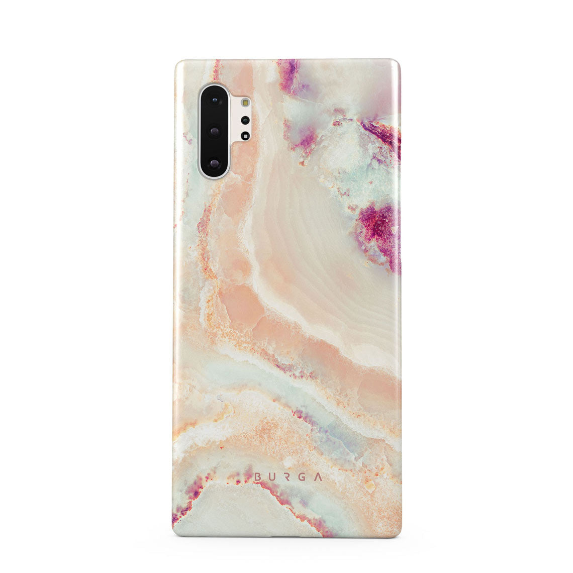 The soft color scheme of coral, pink, blue, and purple of our Berry Sorbet Samsung Galaxy Note 10 Plus phone case radiates soft girly vibes. The feminine touch is felt throughout the design, making it an excellent choice to add to the springtime wardrobe and protect your phone from scratches and falls.