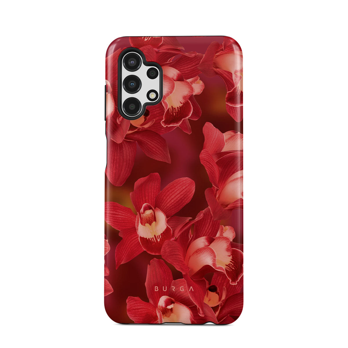 The deep red orchids emerge with a passionate intensity, evoking the fervor and depth of emotions that come with fully experiencing life. They are a vibrant call to embrace every heartbeat, to live deeply and love boldly. Discover the Goddess Energy Samsung Galaxy A13 4G phone case design.