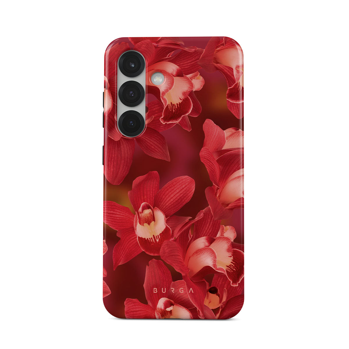 The deep red orchids emerge with a passionate intensity, evoking the fervor and depth of emotions that come with fully experiencing life. They are a vibrant call to embrace every heartbeat, to live deeply and love boldly. Discover the Goddess Energy Samsung Galaxy S25 phone case design.