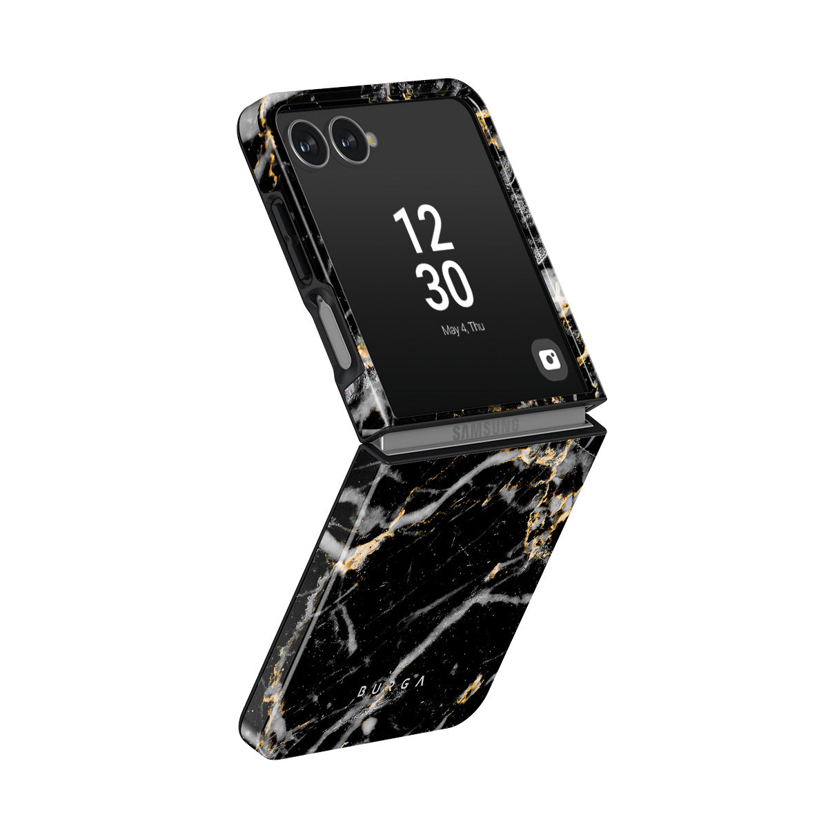Our captivating Make A Wish Samsung Galaxy Z Flip 7 phone case showcases a timeless combination of black marble enriched with gold specks. The golden marble details radiate elegance and add luxury to every wardrobe.