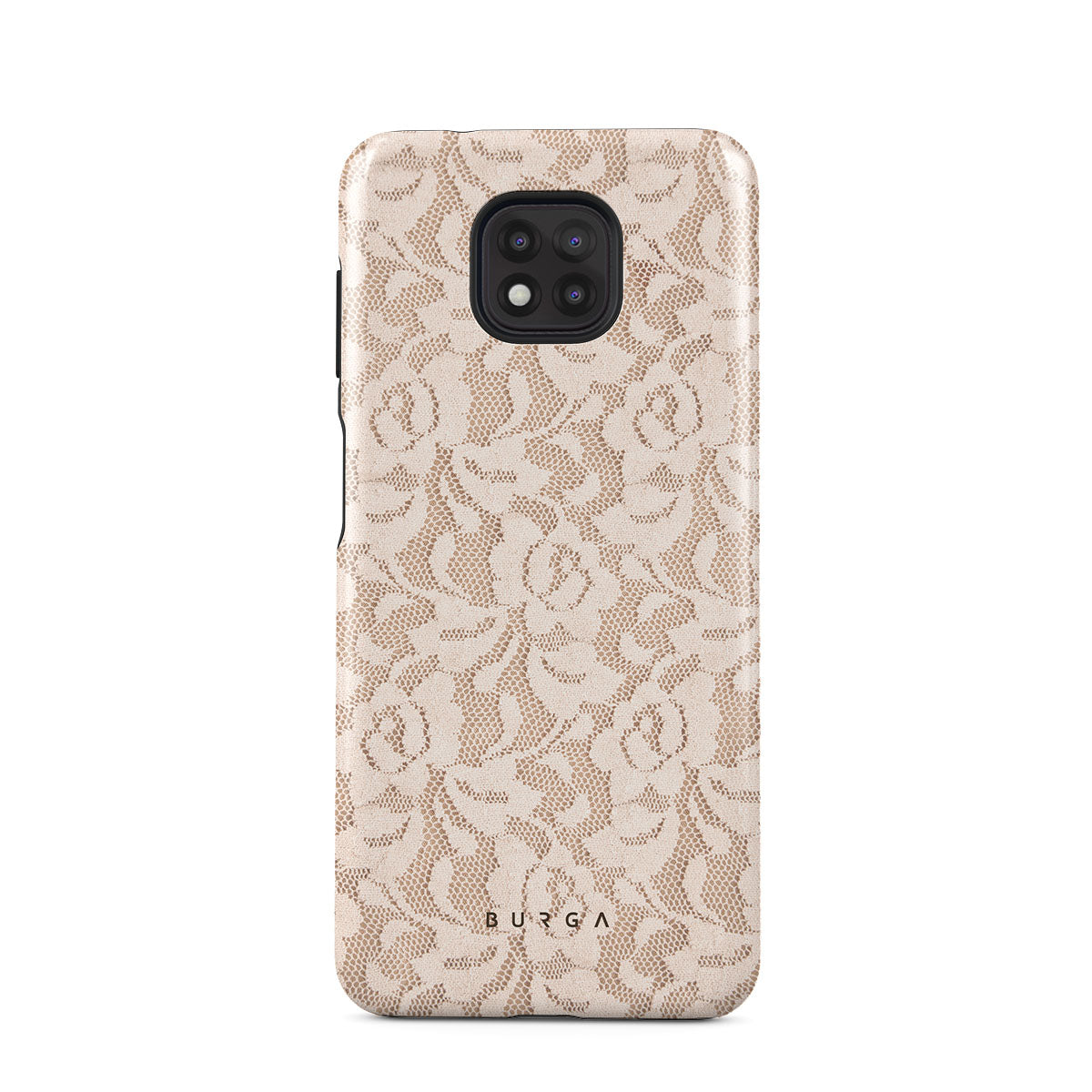 Step into a world of vintage sophistication with the Gone Country Motorola Moto G Power 2021 phone case. Featuring an intricate neutral lace pattern, this design exudes grace and refinement. It's a tribute to the elegant side of country life—ideal for those who love to keep things classy.