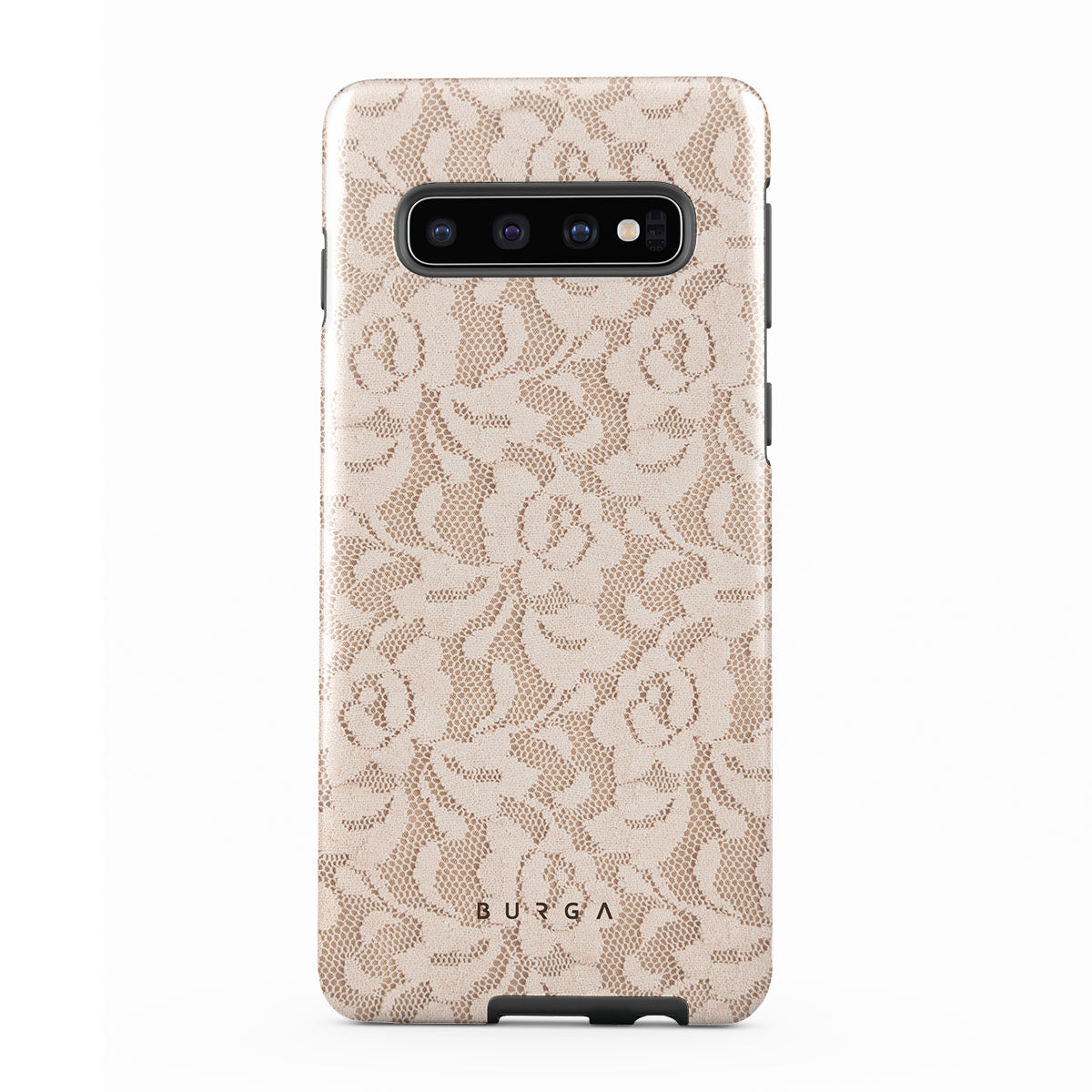Step into a world of vintage sophistication with the Gone Country Samsung Galaxy S10 4G phone case. Featuring an intricate neutral lace pattern, this design exudes grace and refinement. It's a tribute to the elegant side of country life—ideal for those who love to keep things classy.