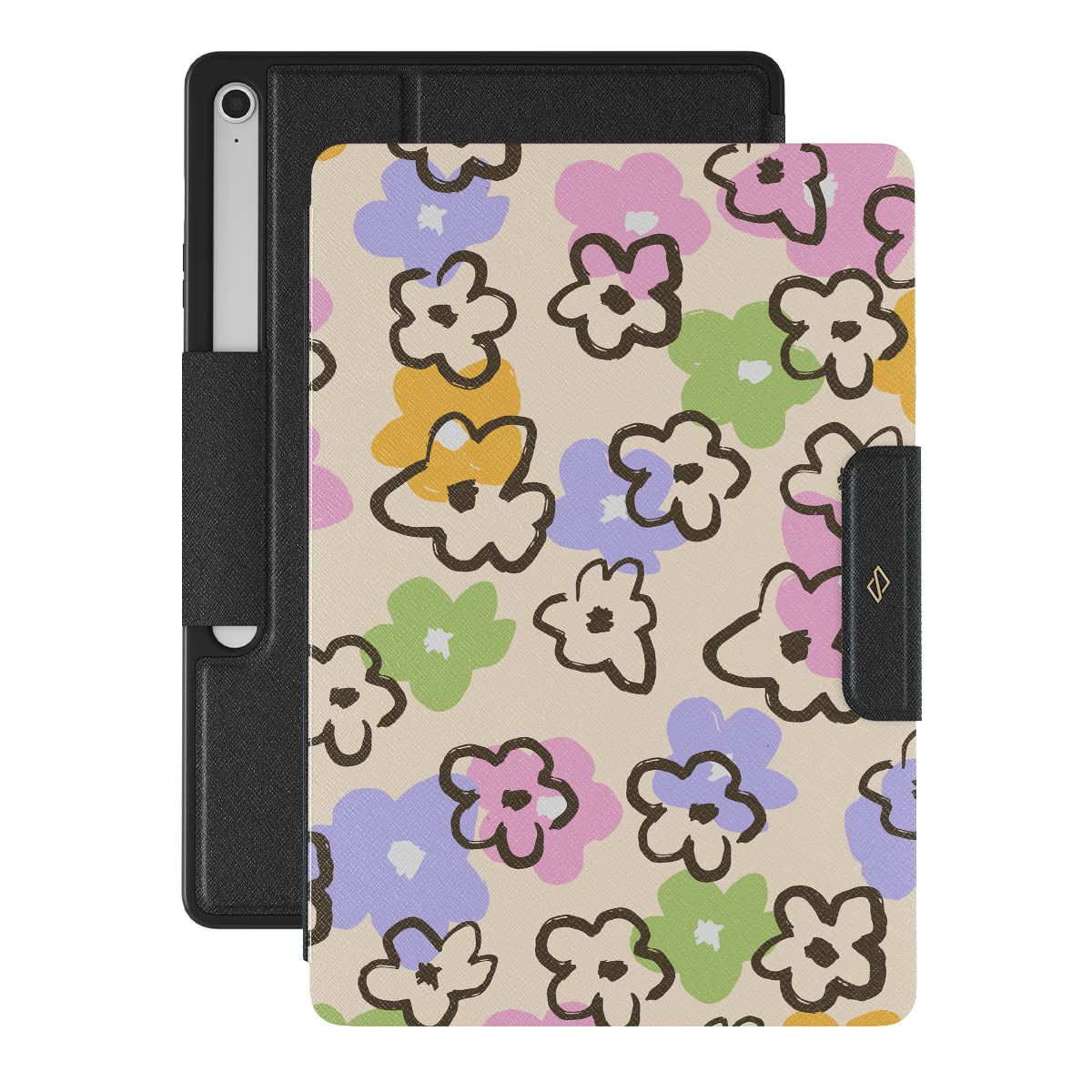 Let these dreamy pastel tones take you to a world brimming with joy, infectious positivity, and Good Vibes! Our playful folio case boasts a beautiful mix of flowers doodled in unique sizes, shapes, and hues, each with their own charm. Whether you're a nostalgic enthusiast or a trendsetter, this case is sure to turn heads and make you stand out from the crowd.
