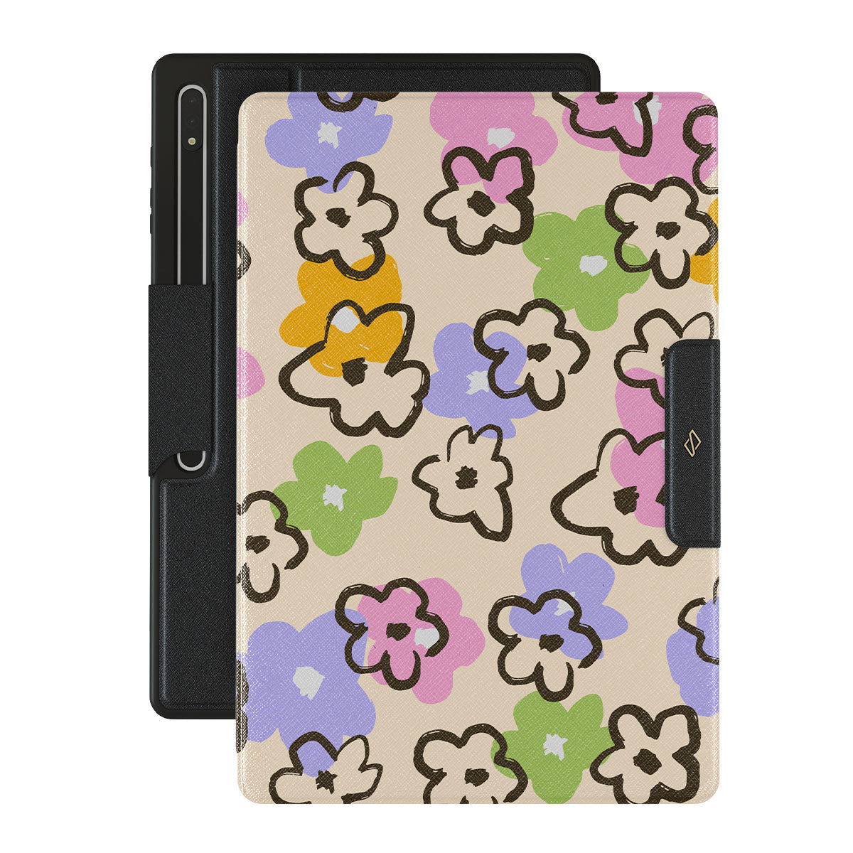Let these dreamy pastel tones take you to a world brimming with joy, infectious positivity, and Good Vibes! Our playful folio case boasts a beautiful mix of flowers doodled in unique sizes, shapes, and hues, each with their own charm. Whether you're a nostalgic enthusiast or a trendsetter, this case is sure to turn heads and make you stand out from the crowd.