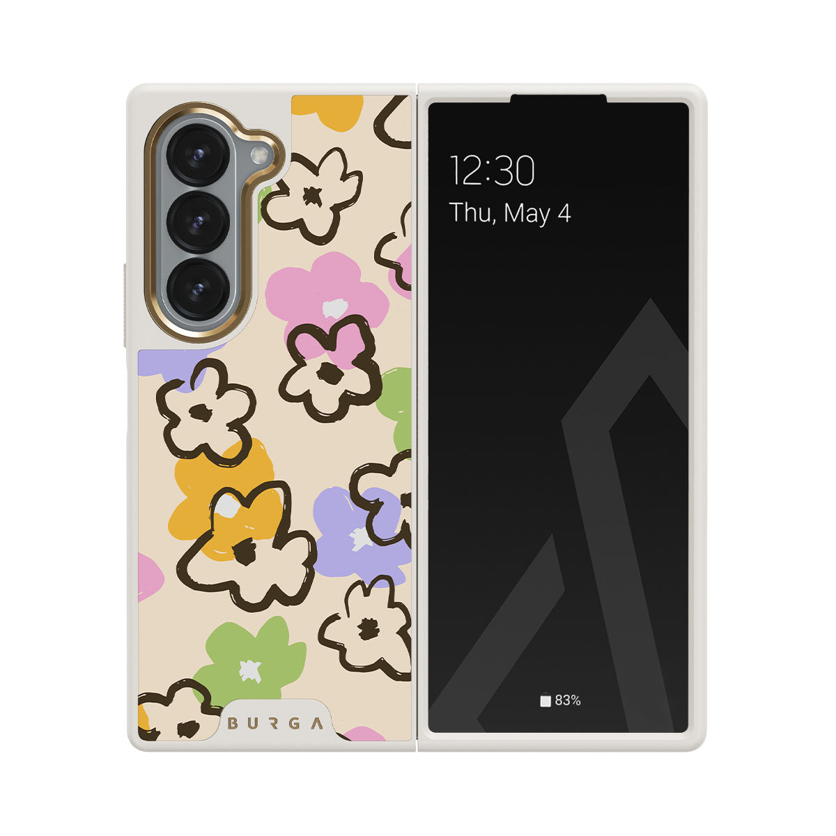 Let these dreamy pastel tones take you to a world brimming with joy, infectious positivity, and Good Vibes! Our playful Samsung Galaxy Z Fold 6 phone case boasts a beautiful mix of flowers doodled in unique sizes, shapes, and hues, each with their own charm. Whether you're a nostalgic enthusiast or a trendsetter, this case is sure to turn heads and make you stand out from the crowd.
