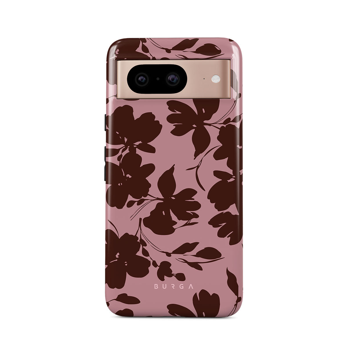 Quietly bold, our Gossip Google Pixel 8 phone case design speaks volumes in subtlety. A soft rosé background, layered with deep red-brown floral accents, gives off a refined, almost mysterious vibe. It's for those who let the details do the talking.