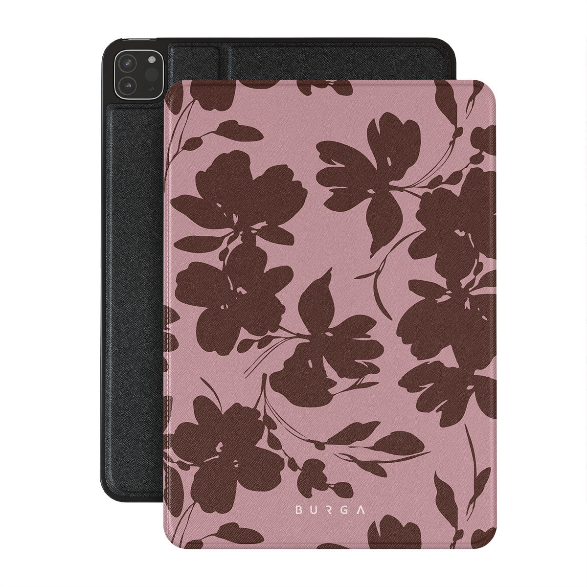 Quietly bold, our Gossip iPad Pro 11 (2nd/1st Gen) folio case design speaks volumes in subtlety. A soft rosé background, layered with deep red-brown floral accents, gives off a refined, almost mysterious vibe. It's for those who let the details do the talking.