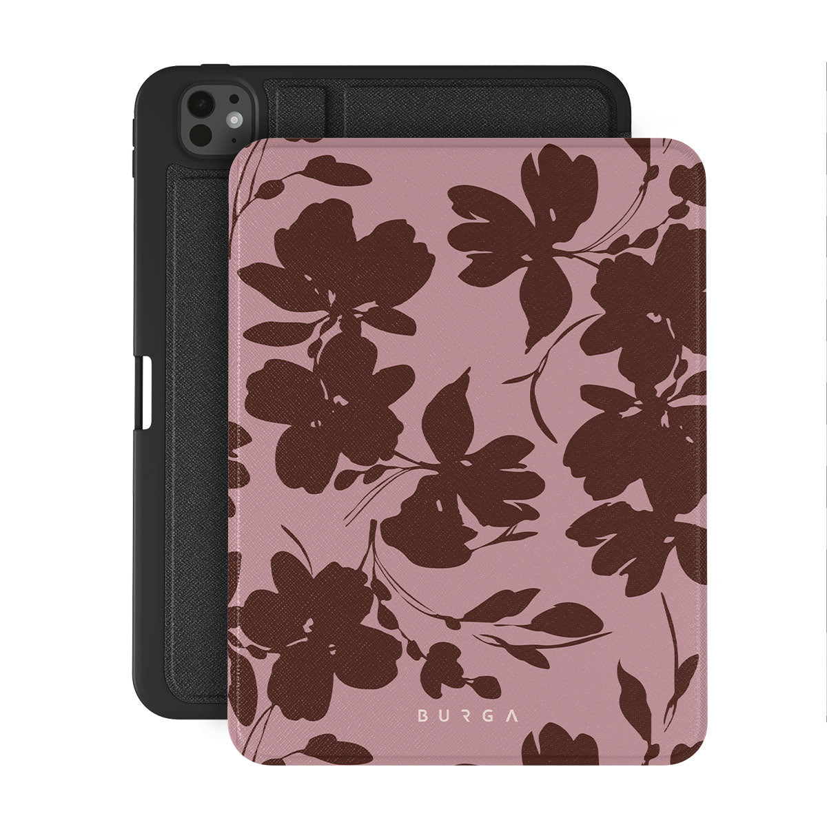 Quietly bold, our Gossip iPad Pro 11 (8th/7th Gen) folio case design speaks volumes in subtlety. A soft rosé background, layered with deep red-brown floral accents, gives off a refined, almost mysterious vibe. It's for those who let the details do the talking.