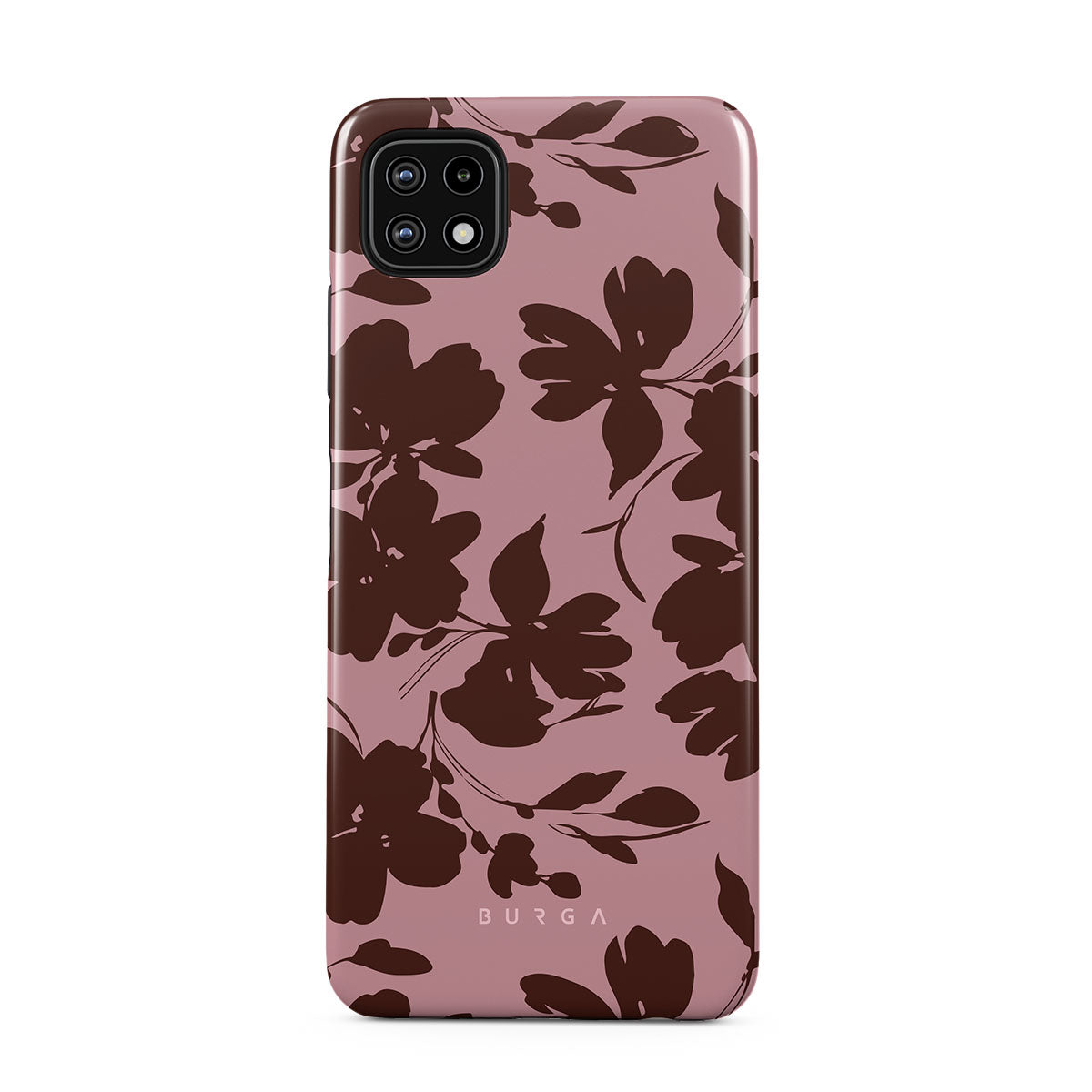 Quietly bold, our Gossip Samsung Galaxy A22 5G phone case design speaks volumes in subtlety. A soft rosé background, layered with deep red-brown floral accents, gives off a refined, almost mysterious vibe. It's for those who let the details do the talking.