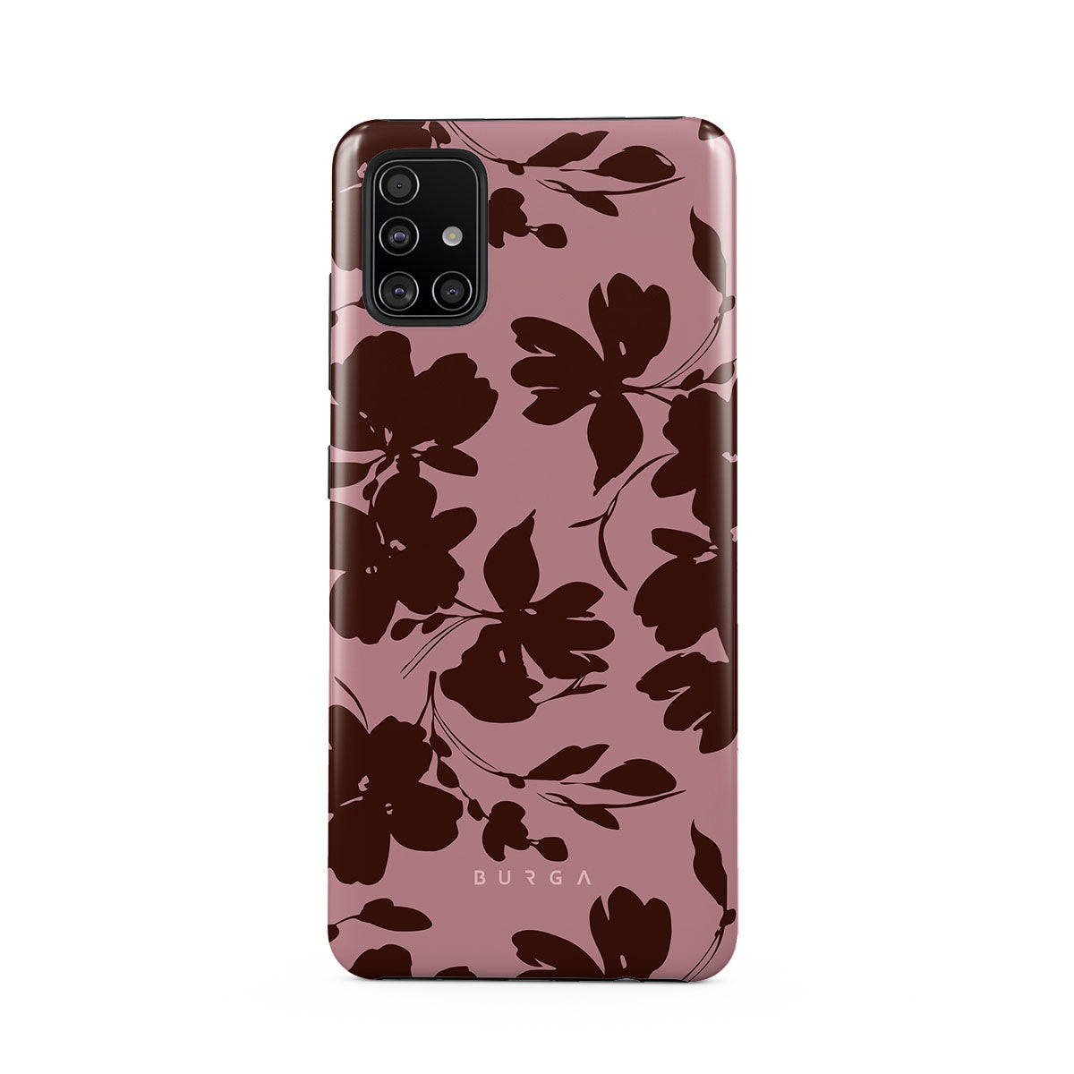 Quietly bold, our Gossip Samsung Galaxy A71 4G phone case design speaks volumes in subtlety. A soft rosé background, layered with deep red-brown floral accents, gives off a refined, almost mysterious vibe. It's for those who let the details do the talking.