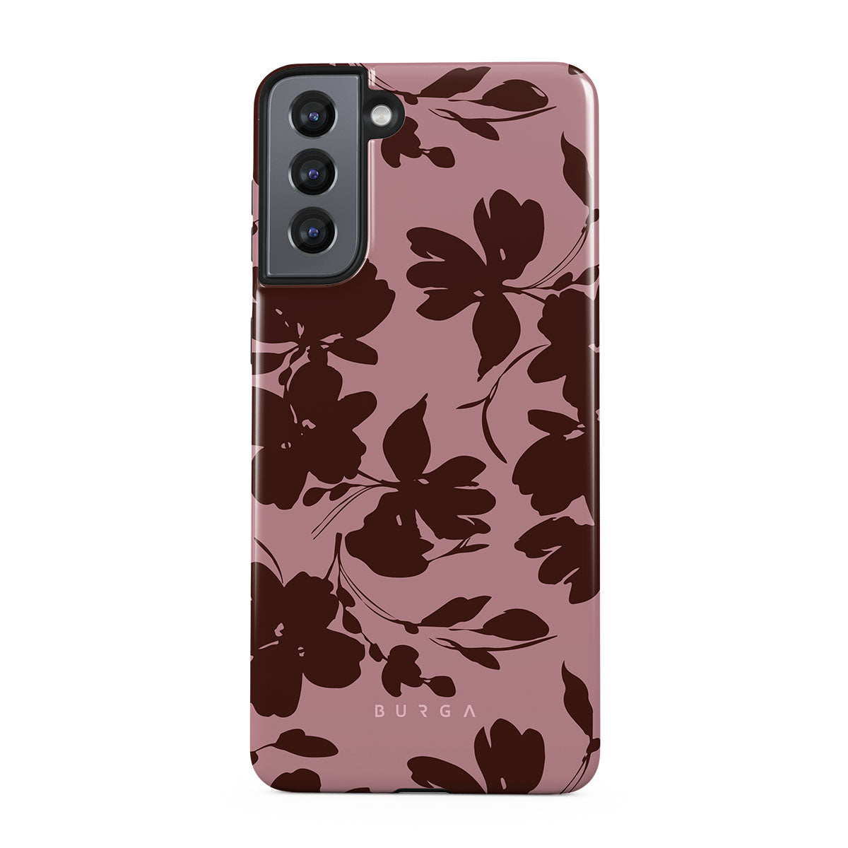 Quietly bold, our Gossip Samsung Galaxy S21 phone case design speaks volumes in subtlety. A soft rosé background, layered with deep red-brown floral accents, gives off a refined, almost mysterious vibe. It's for those who let the details do the talking.
