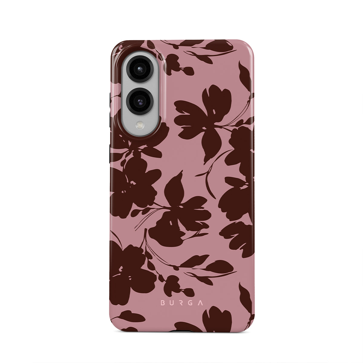 Quietly bold, our Gossip Samsung Galaxy S25 Edge phone case design speaks volumes in subtlety. A soft rosé background, layered with deep red-brown floral accents, gives off a refined, almost mysterious vibe. It's for those who let the details do the talking.