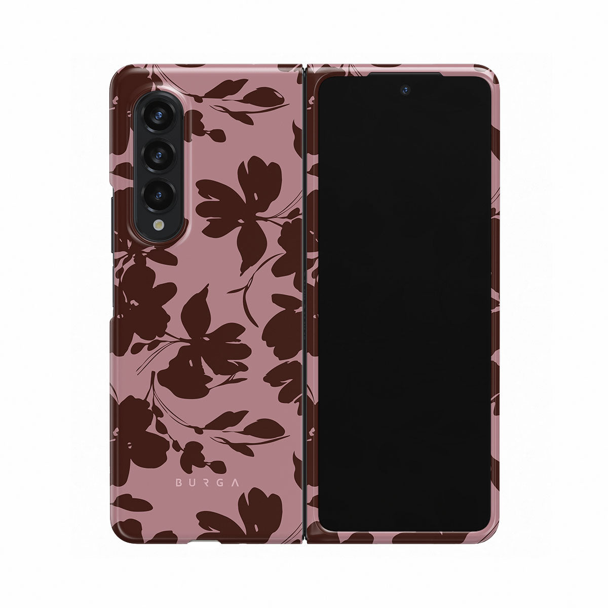 Quietly bold, our Gossip Samsung Galaxy Z Fold 3 phone case design speaks volumes in subtlety. A soft rosé background, layered with deep red-brown floral accents, gives off a refined, almost mysterious vibe. It's for those who let the details do the talking.