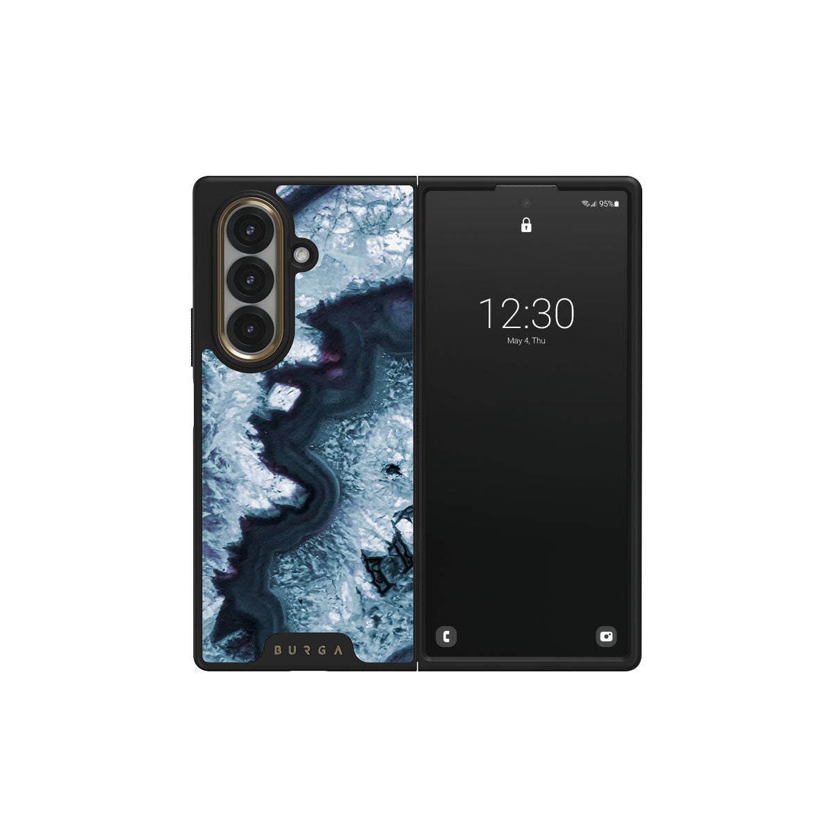 The gray marble pattern of our hard-shell Samsung Galaxy Z Fold 7 phone case inspired by the frozen lake adds a dreamy cool-toned blue color that is sure to become a hit in everyone's style. Frost-inspired gray marble swirls look enchanting while protecting your cellphone.