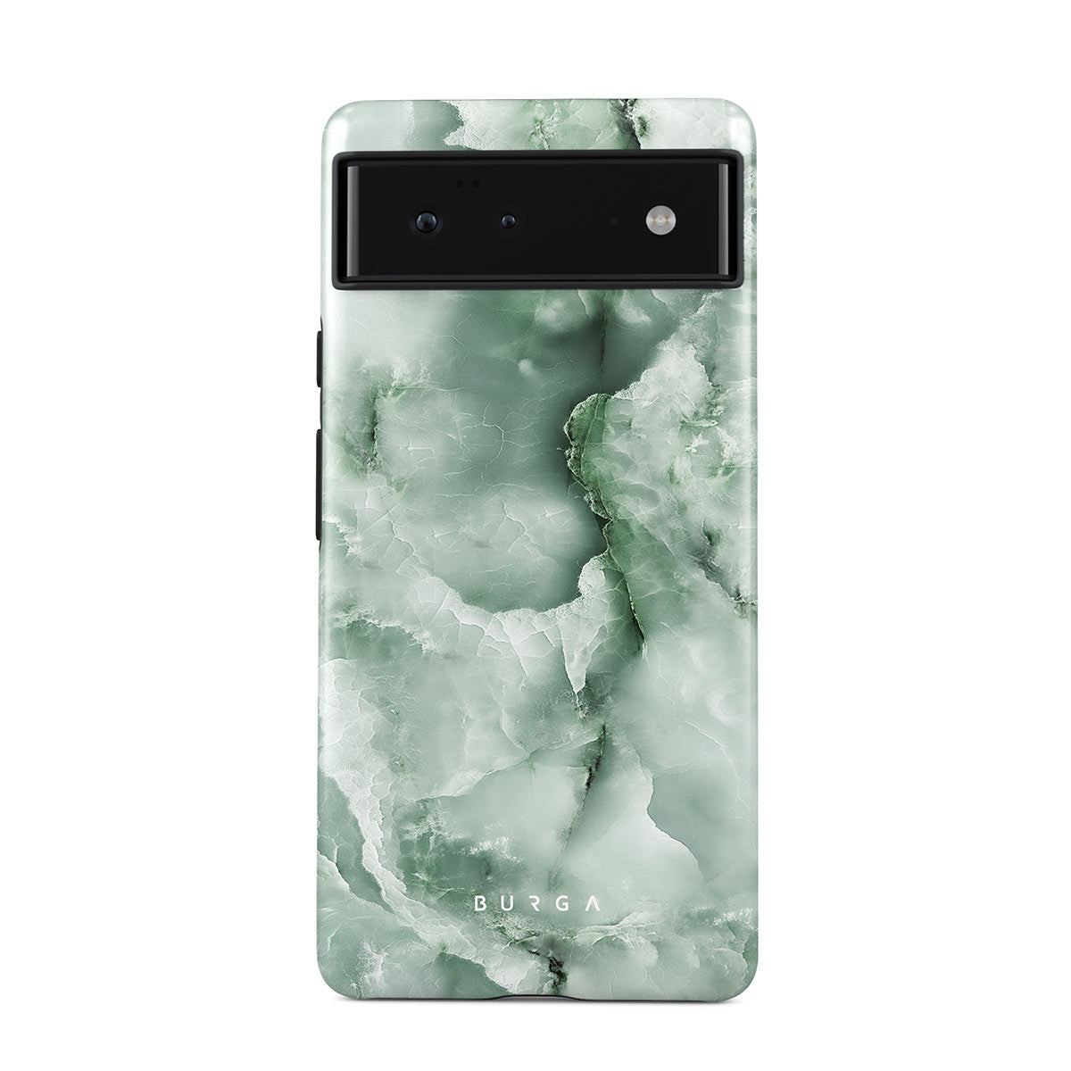 Our Pistachio Cheesecake Google Pixel 6 phone case is inspired by the soft green color of pistachios. The marble pattern never goes out of style, and reimagined design with pastel green and white swirls offers a designer feel. Such a hard-shell case will provide heavy-duty protection while adding a touch of pastel to your collection.