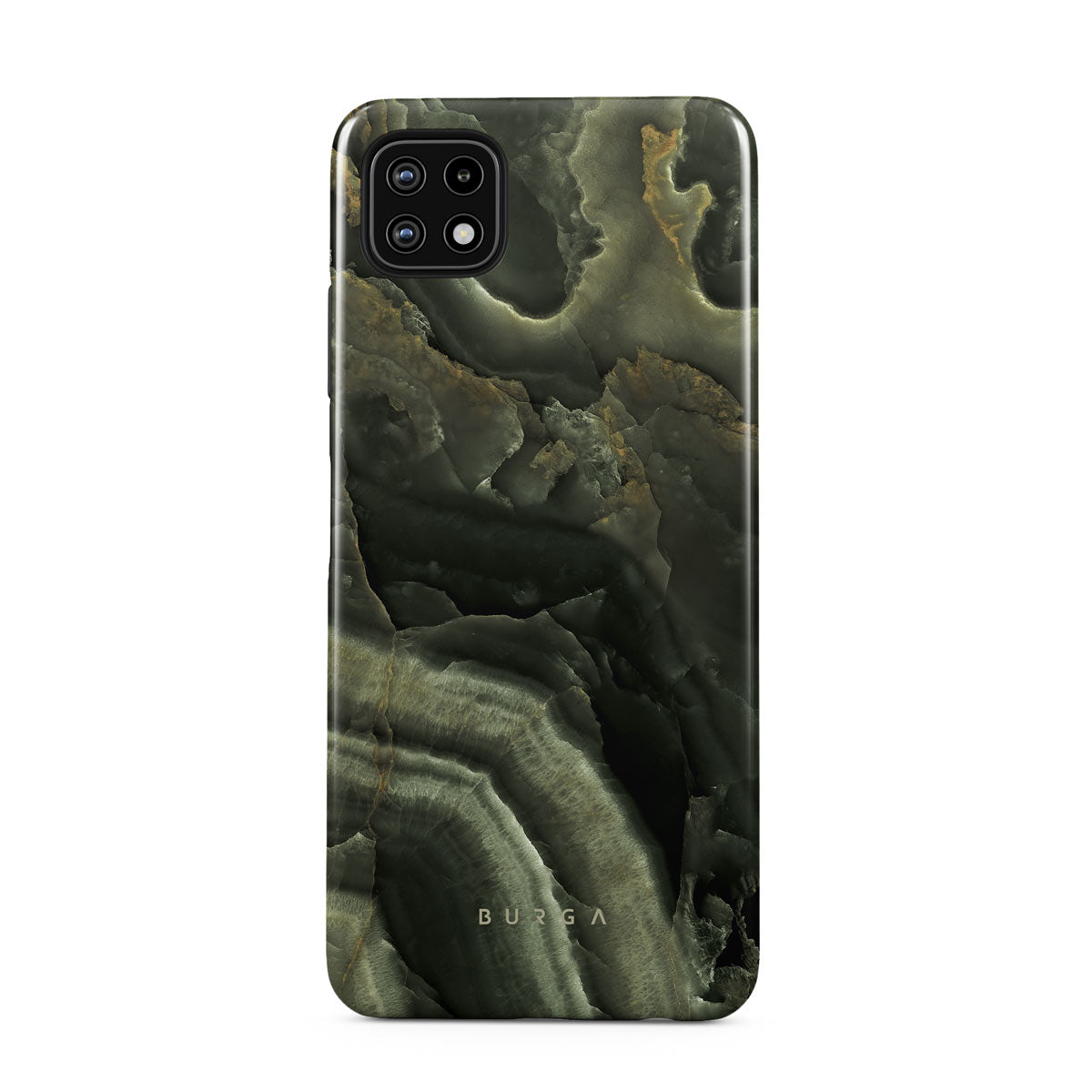 Carry the mystery of unexplored land found in an ominous misty forest with a green marble Samsung Galaxy A22 5G phone case inspired by it. The case combines the popular marble trend with heavy-duty protection becoming a unique companion to your device.
