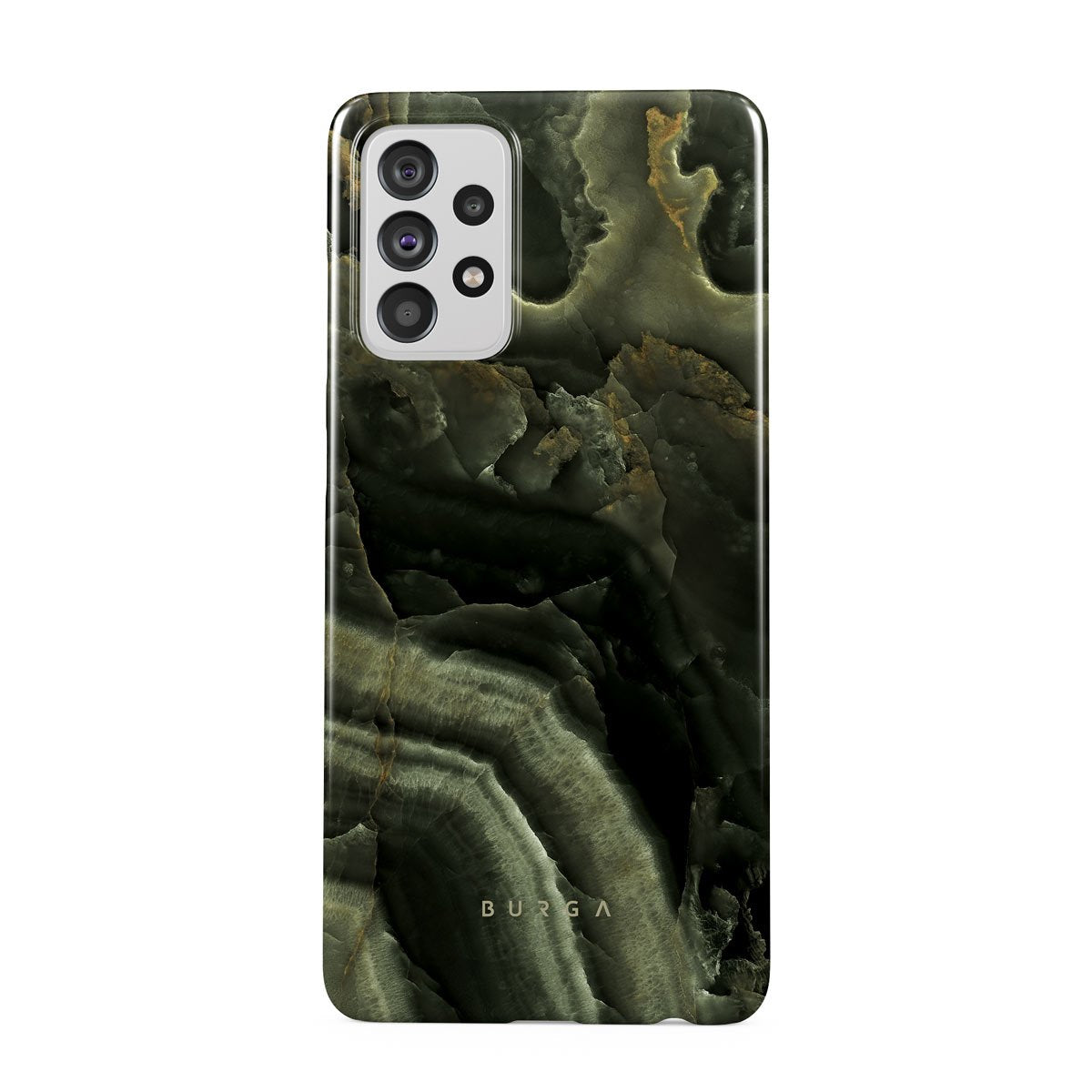Carry the mystery of unexplored land found in an ominous misty forest with a green marble Samsung Galaxy A72 phone case inspired by it. The case combines the popular marble trend with heavy-duty protection becoming a unique companion to your device.