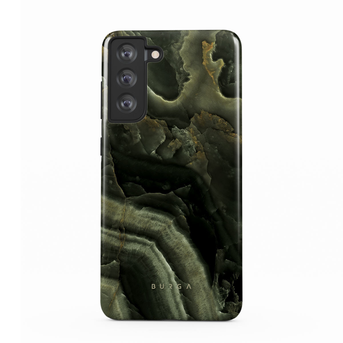 Carry the mystery of unexplored land found in an ominous misty forest with a green marble Samsung Galaxy S21 FE phone case inspired by it. The case combines the popular marble trend with heavy-duty protection becoming a unique companion to your device.