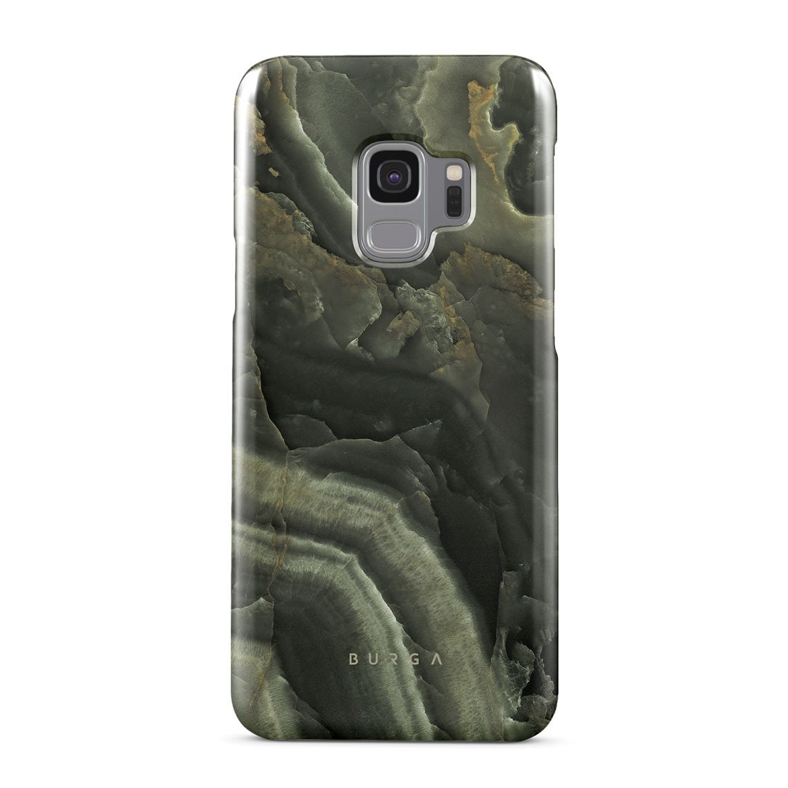 Carry the mystery of unexplored land found in an ominous misty forest with a green marble Samsung Galaxy S9 phone case inspired by it. The case combines the popular marble trend with heavy-duty protection becoming a unique companion to your device.