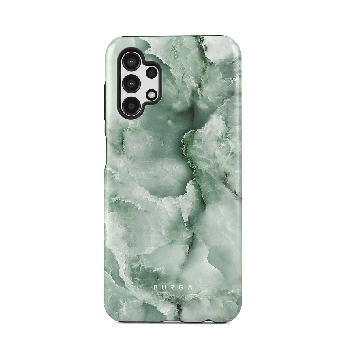 Our Pistachio Cheesecake Samsung Galaxy A13 4G phone case is inspired by the soft green color of pistachios. The marble pattern never goes out of style, and reimagined design with pastel green and white swirls offers a designer feel. Such a hard-shell case will provide heavy-duty protection while adding a touch of pastel to your collection.
