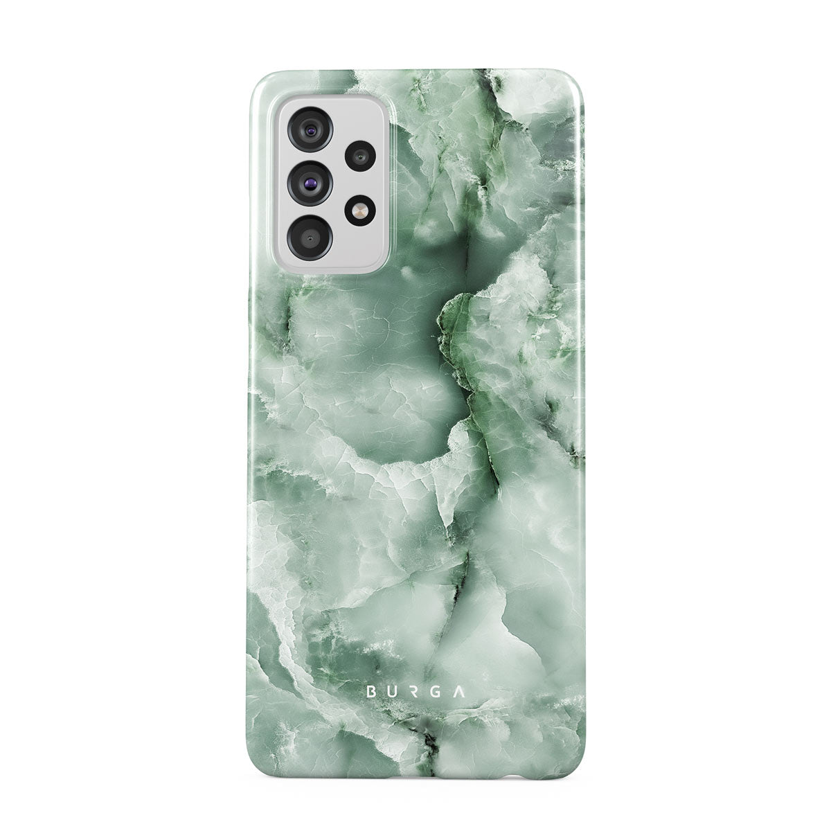 Our Pistachio Cheesecake Samsung Galaxy A72 phone case is inspired by the soft green color of pistachios. The marble pattern never goes out of style, and reimagined design with pastel green and white swirls offers a designer feel. Such a hard-shell case will provide heavy-duty protection while adding a touch of pastel to your collection.