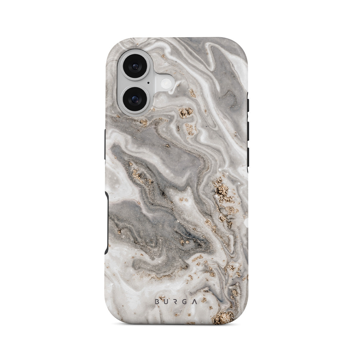 The wind outside is playing his songs. Some fear, some love, and some simply enjoy. But do not be afraid, with our grey marble iPhone 17 phone case inspired by a beautiful snowstorm, you can have the pretty part of it without any coldness. And as the case offers heavy-duty protection, your phone will also be safe and sound!