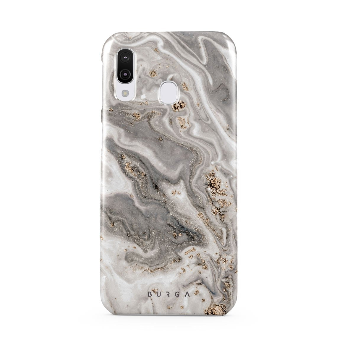 The wind outside is playing his songs. Some fear, some love, and some simply enjoy. But do not be afraid, with our grey marble Samsung Galaxy A40 phone case inspired by a beautiful snowstorm, you can have the pretty part of it without any coldness. And as the case offers heavy-duty protection, your phone will also be safe and sound!