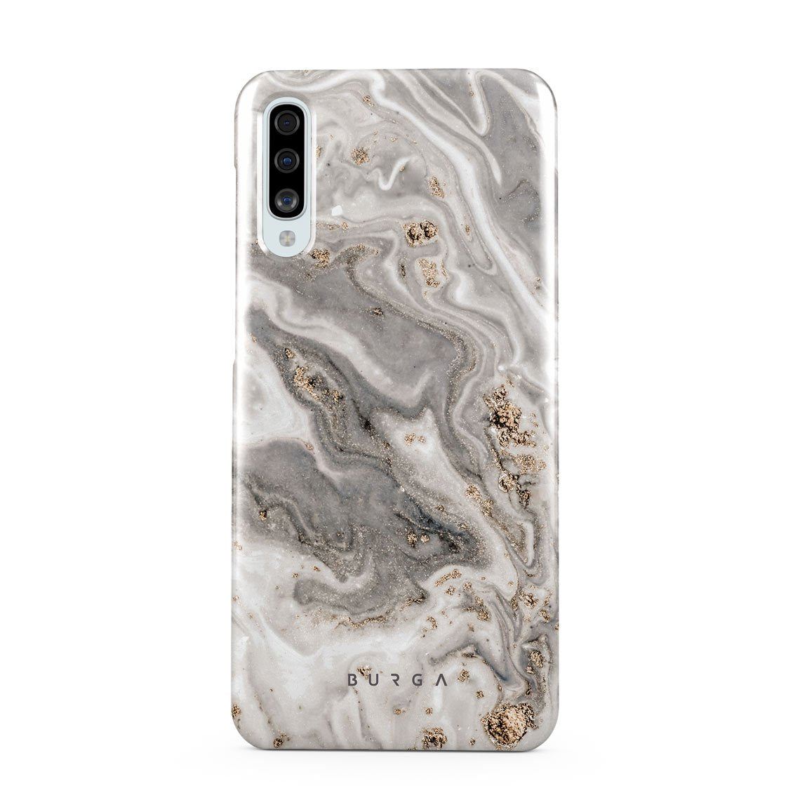 The wind outside is playing his songs. Some fear, some love, and some simply enjoy. But do not be afraid, with our grey marble Samsung Galaxy A50 phone case inspired by a beautiful snowstorm, you can have the pretty part of it without any coldness. And as the case offers heavy-duty protection, your phone will also be safe and sound!