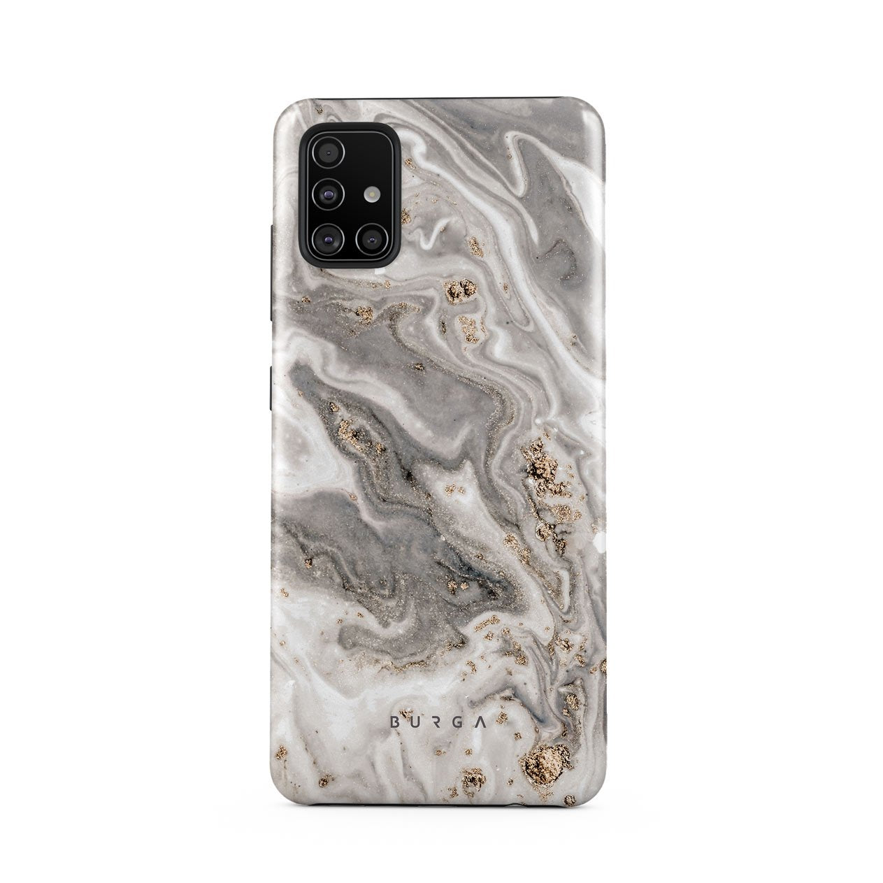 The wind outside is playing his songs. Some fear, some love, and some simply enjoy. But do not be afraid, with our grey marble Samsung Galaxy A71 phone case inspired by a beautiful snowstorm, you can have the pretty part of it without any coldness. And as the case offers heavy-duty protection, your phone will also be safe and sound!