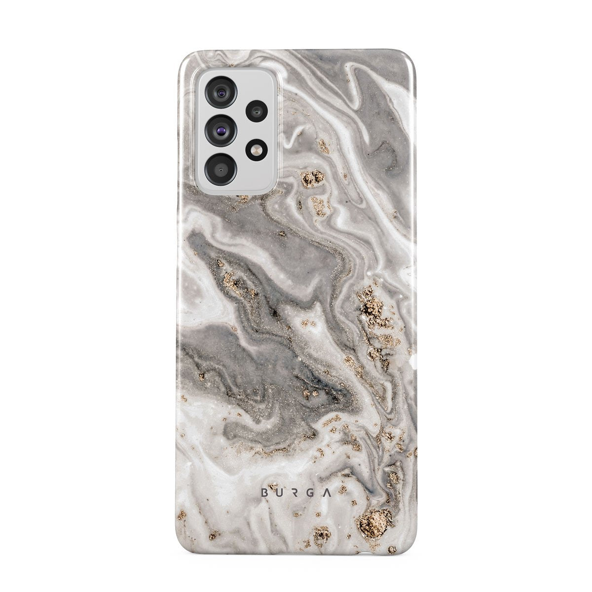 The wind outside is playing his songs. Some fear, some love, and some simply enjoy. But do not be afraid, with our grey marble Samsung Galaxy A72 phone case inspired by a beautiful snowstorm, you can have the pretty part of it without any coldness. And as the case offers heavy-duty protection, your phone will also be safe and sound!