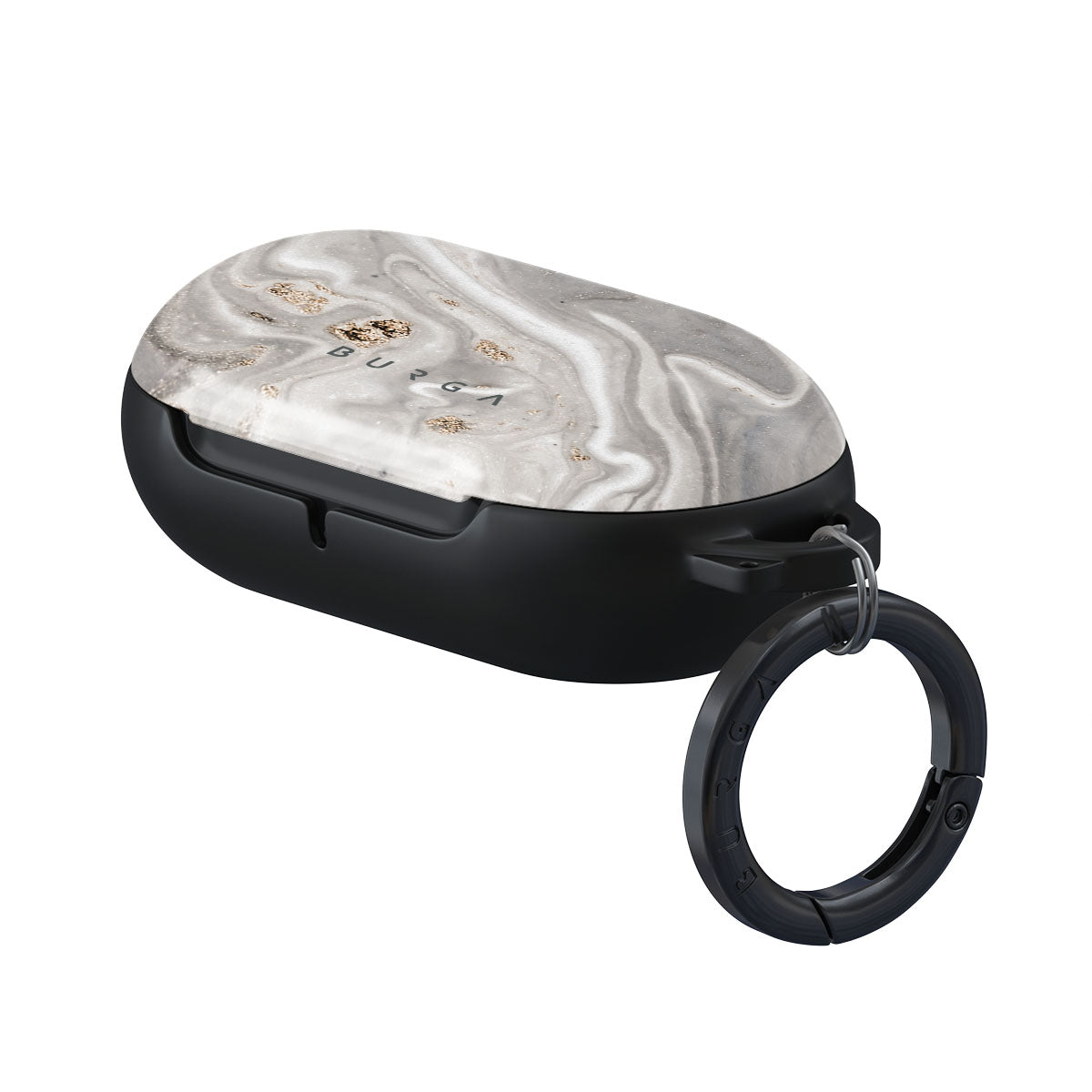 Our snowstorm-inspired Samsung Galaxy Buds Headphones case cover is an absolute grey marble dream. The golden specks in the design add a touch of luxury to the dreamy marble pattern, creating a protective and stunning cover. Our case fits perfectly snug around Samsung Galaxy Buds Headphones. “Like a glove!” one might say. And it won’t disrupt the wireless charging capabilities of the newer model. There’s even an LED light indicator to prove it (don’t worry, wired charging still works, too). When fitted, the BURGA case will protect the delicate Samsung Galaxy Buds Headphones case beneath it from scratches, bumps, and drops while remaining scratch-free itself. Our signature design pattern prints are High Quality, and will never peel or fade away- thanks to our unique printing technology. And finally, a handy carabiner is there to make your life easier and more convenient: just snap it around your keys or belt loop and tackle the day head-on. Your music is right there by your side when you need it.