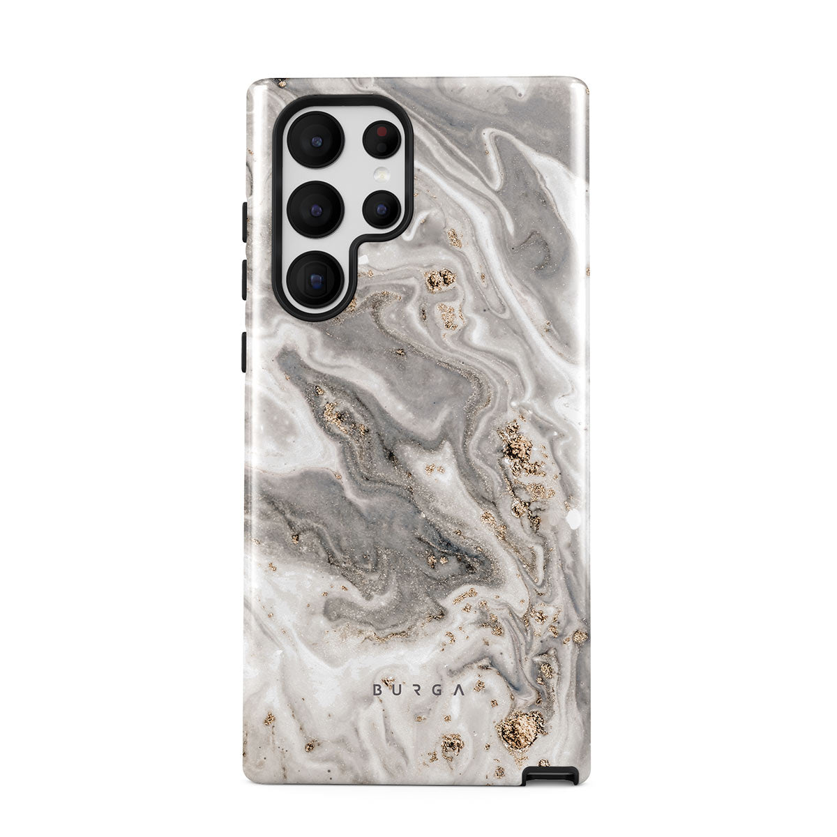 The wind outside is playing his songs. Some fear, some love, and some simply enjoy. But do not be afraid, with our grey marble Samsung Galaxy S22 Ultra phone case inspired by a beautiful snowstorm, you can have the pretty part of it without any coldness. And as the case offers heavy-duty protection, your phone will also be safe and sound!